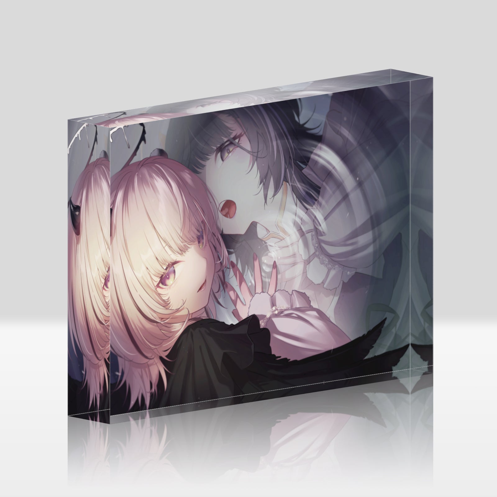 キャンバスアートの上にアクリルパネルが合わさった階層構造でイラストとは一味違う奥行き感のある作品を制作します。