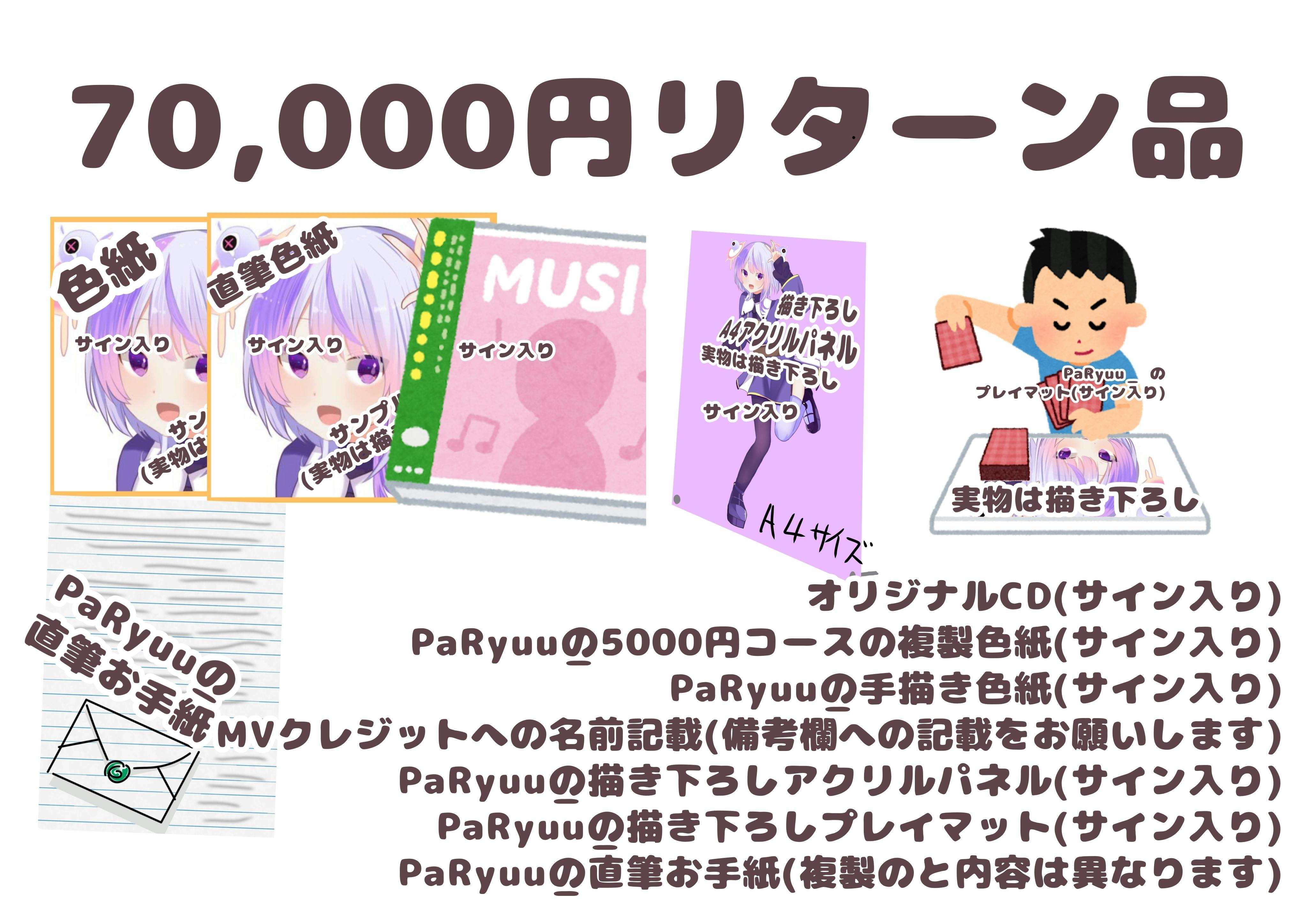 リターン品は先行で手に入るオリジナル楽曲CDやオリジナルグッズなどをご用意しております!