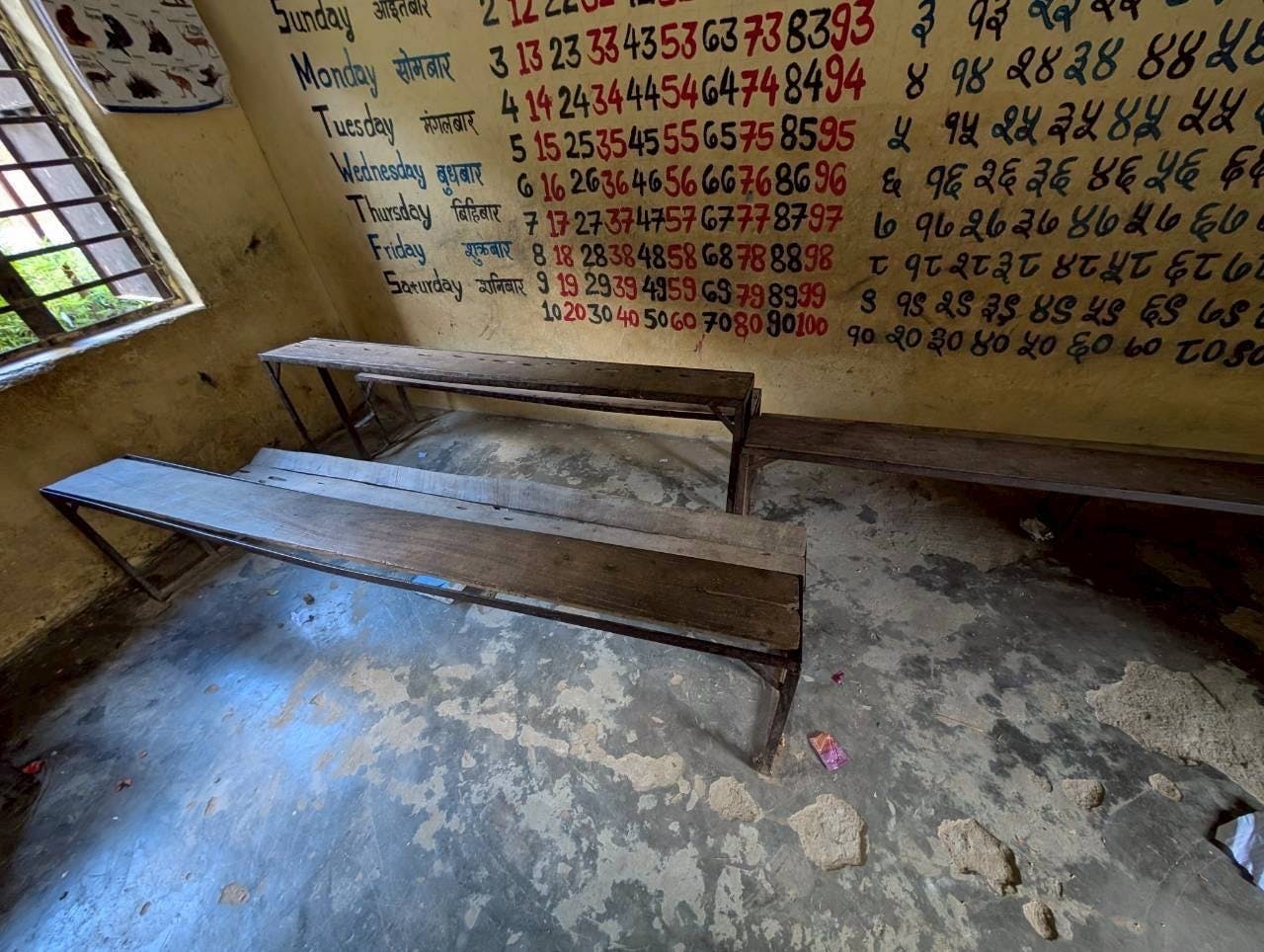 しかし、そこで私たちは学校の現状から大きな衝撃を受けました。チェパング村はネパールでも最も厳しい環境に置かれた地域のひとつで、明らかにサイズの合わない服を着た子、裸足で歩けば怪我をするようなゴツゴツの床、ガタついて字すら書きにくい机、そして教室の頭上には、今にも落下しそうな天井板がありました。