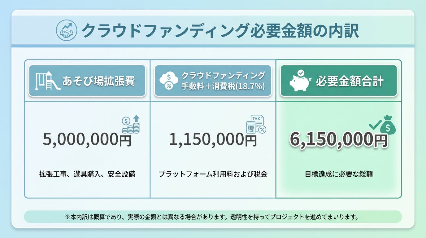 そこで今回、皆様に500万円のご支援+必要手数料等をお願いすることにしました。