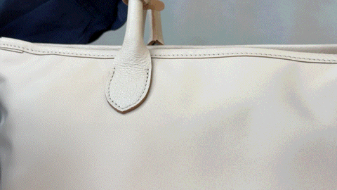 外装の大部分を占めるナイロン素材はもちろん、持ち手やアクセントに使用している革にも撥水加工を施しています。