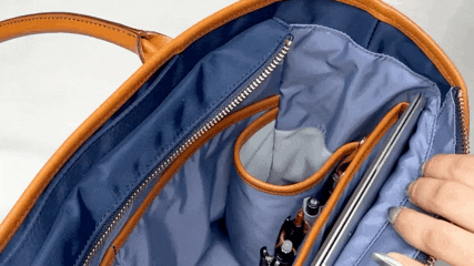 カバンの裏地といえば、黒!と、想像される方も多いかもしれません。しかし、明るい色の裏地のほうがモノが探しやすいのです!