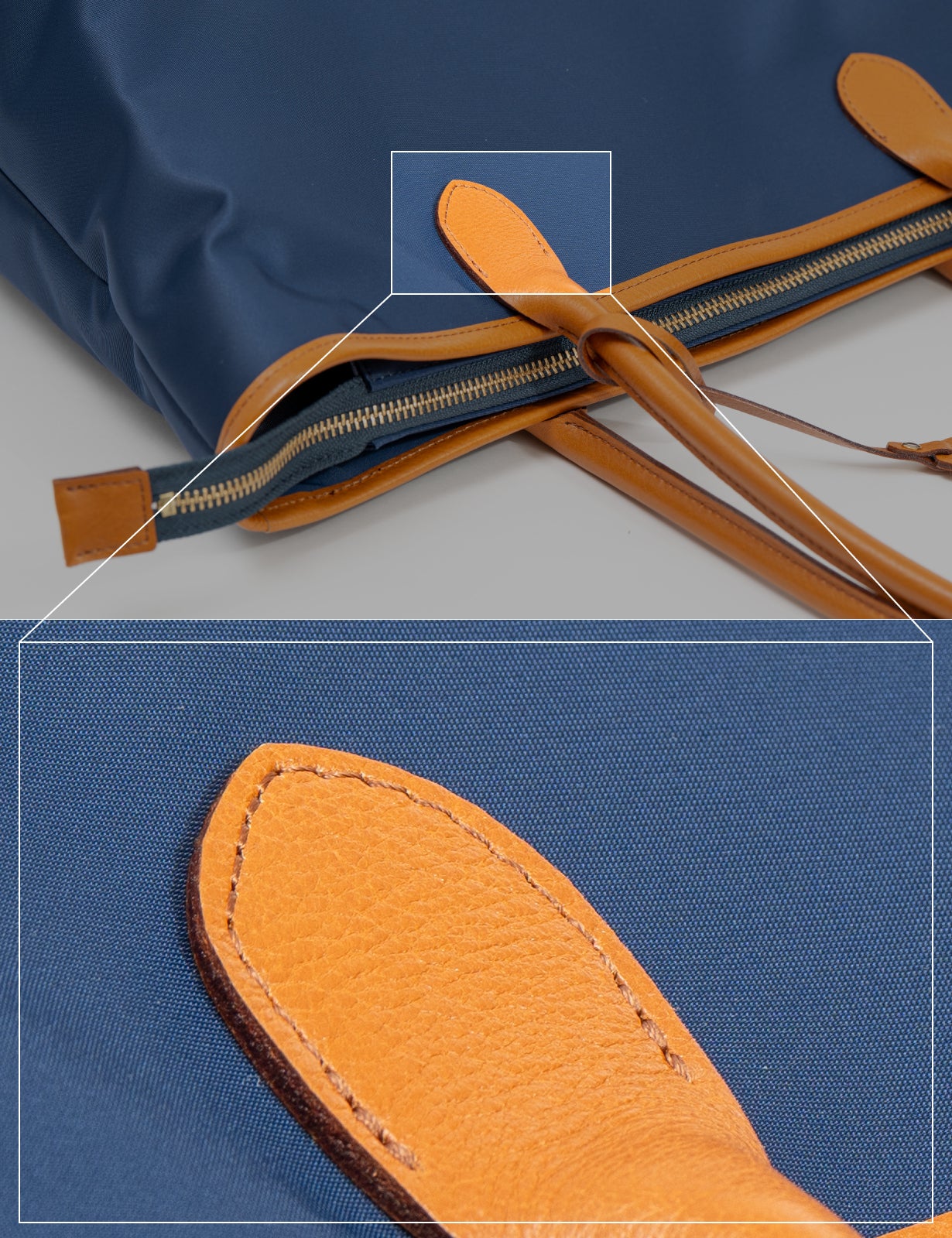 通常、バッグのマテリアルは2種類程度で構成されることが多いですが、エフォートレストートでは細かい部分の素材も適材適所で選定しています。