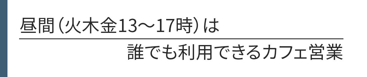 ・昼間(月水金13〜15時)は誰でも利用できるカフェ営業。
