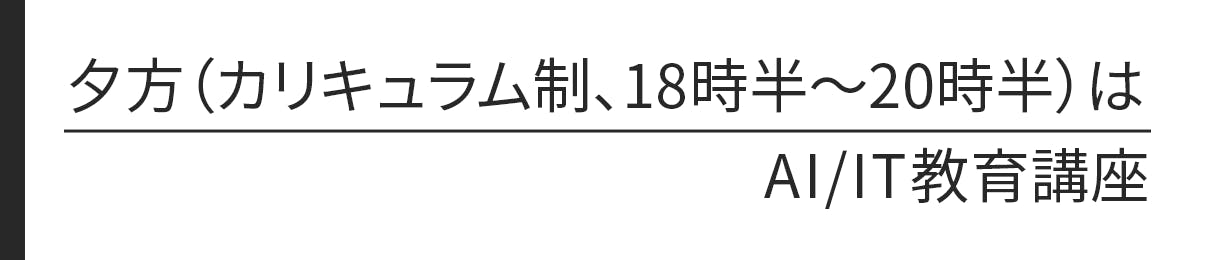 ・夕方(月水金17時〜20時)はAI/IT教育講座。