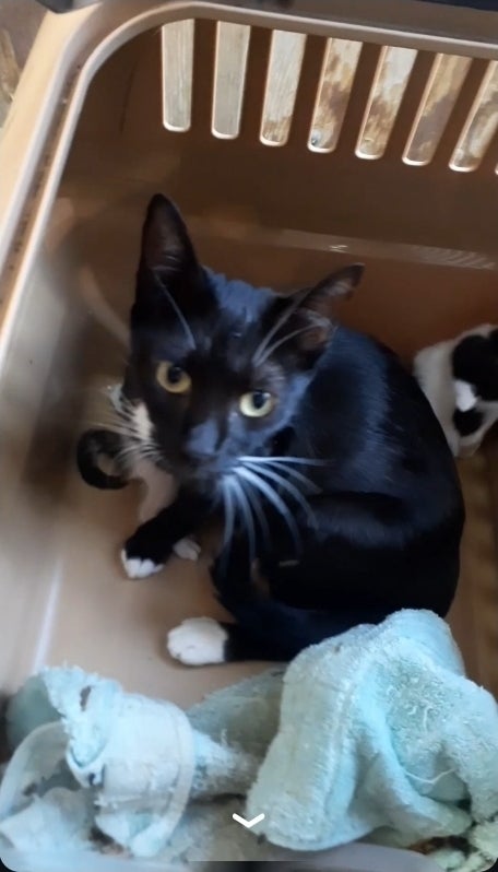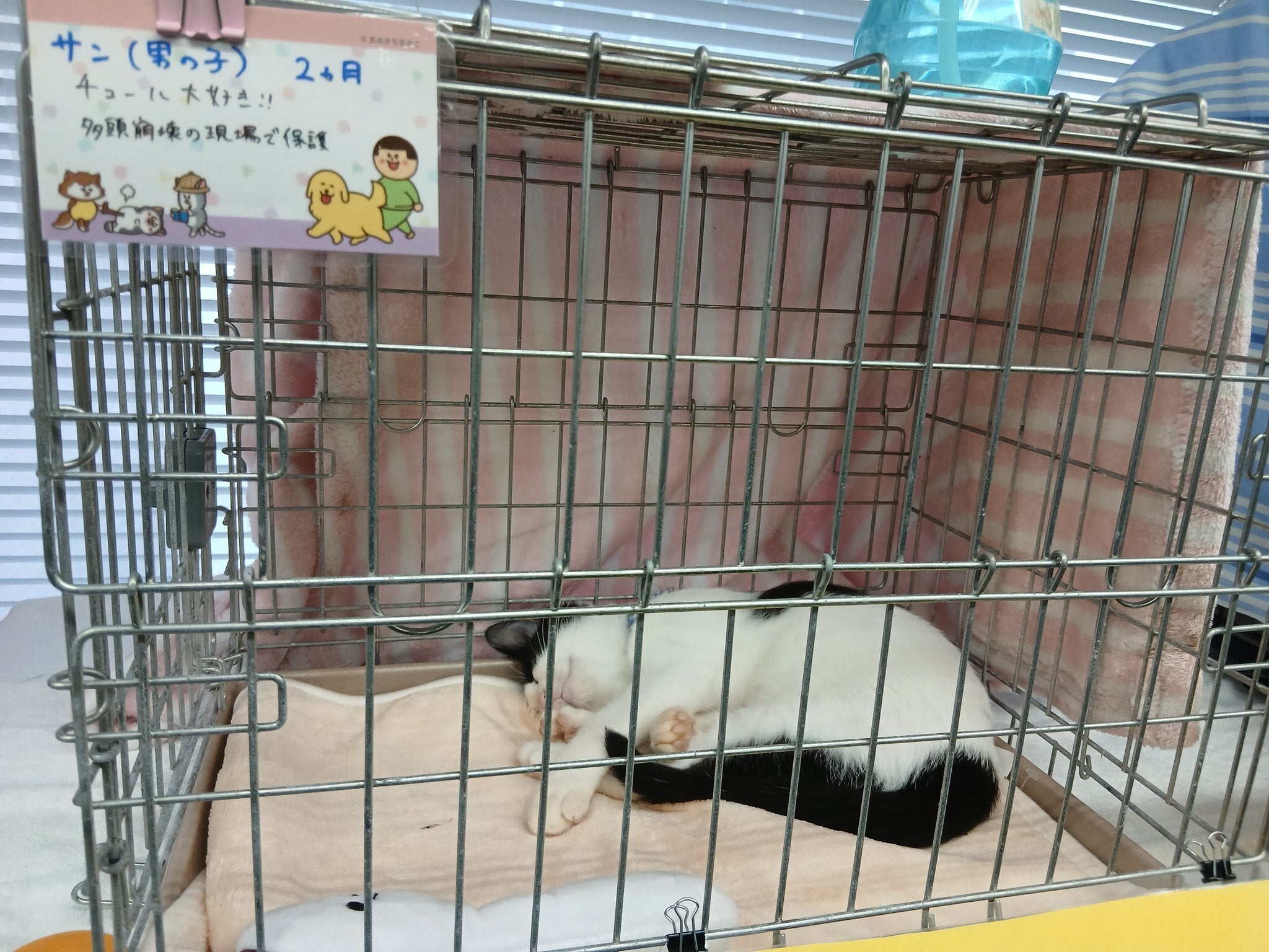 多頭崩壊現場で、飼い主が倒れ駐車場のケージに置き去りにされていた3匹。