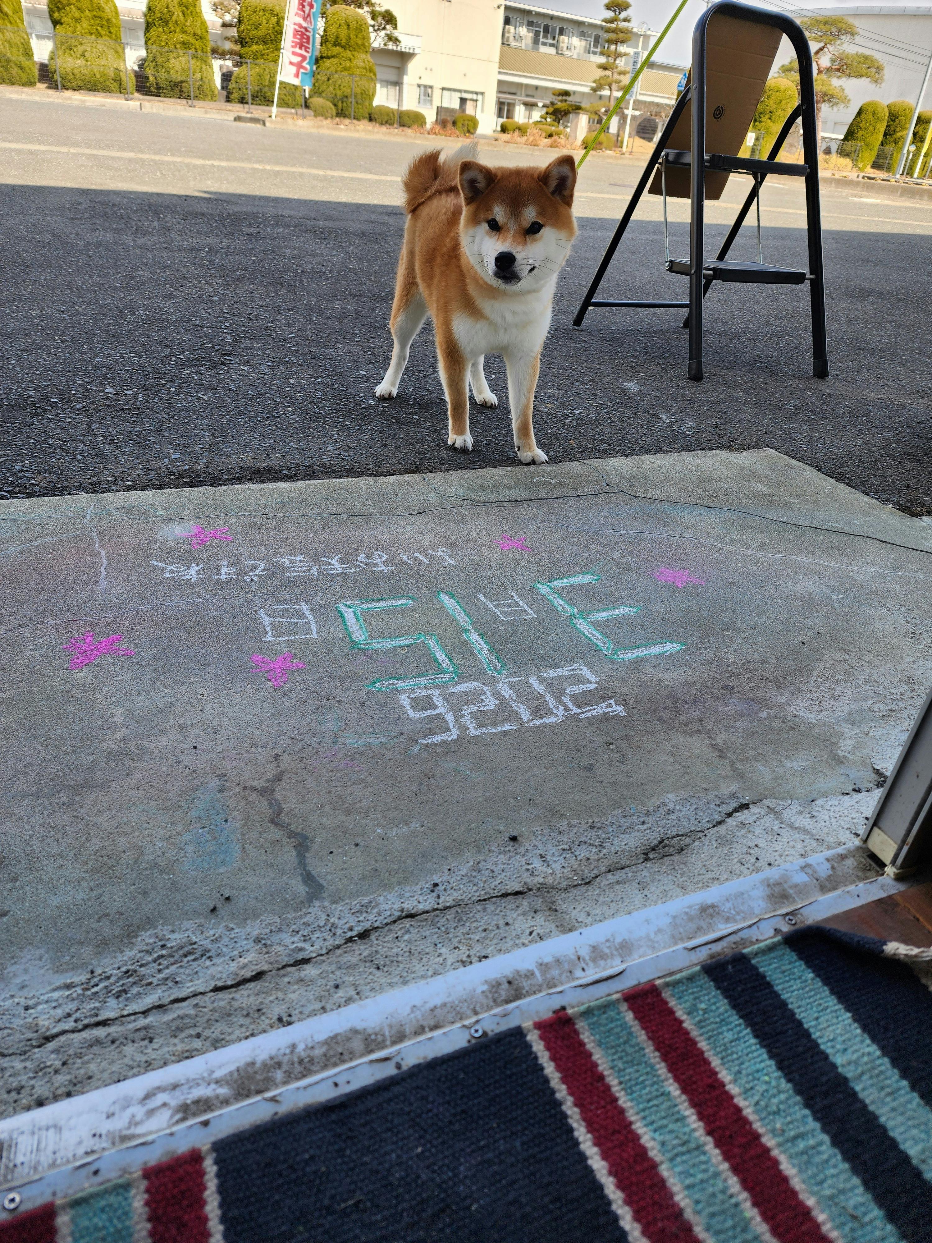 ワンちゃんも散歩中に、チラッ!