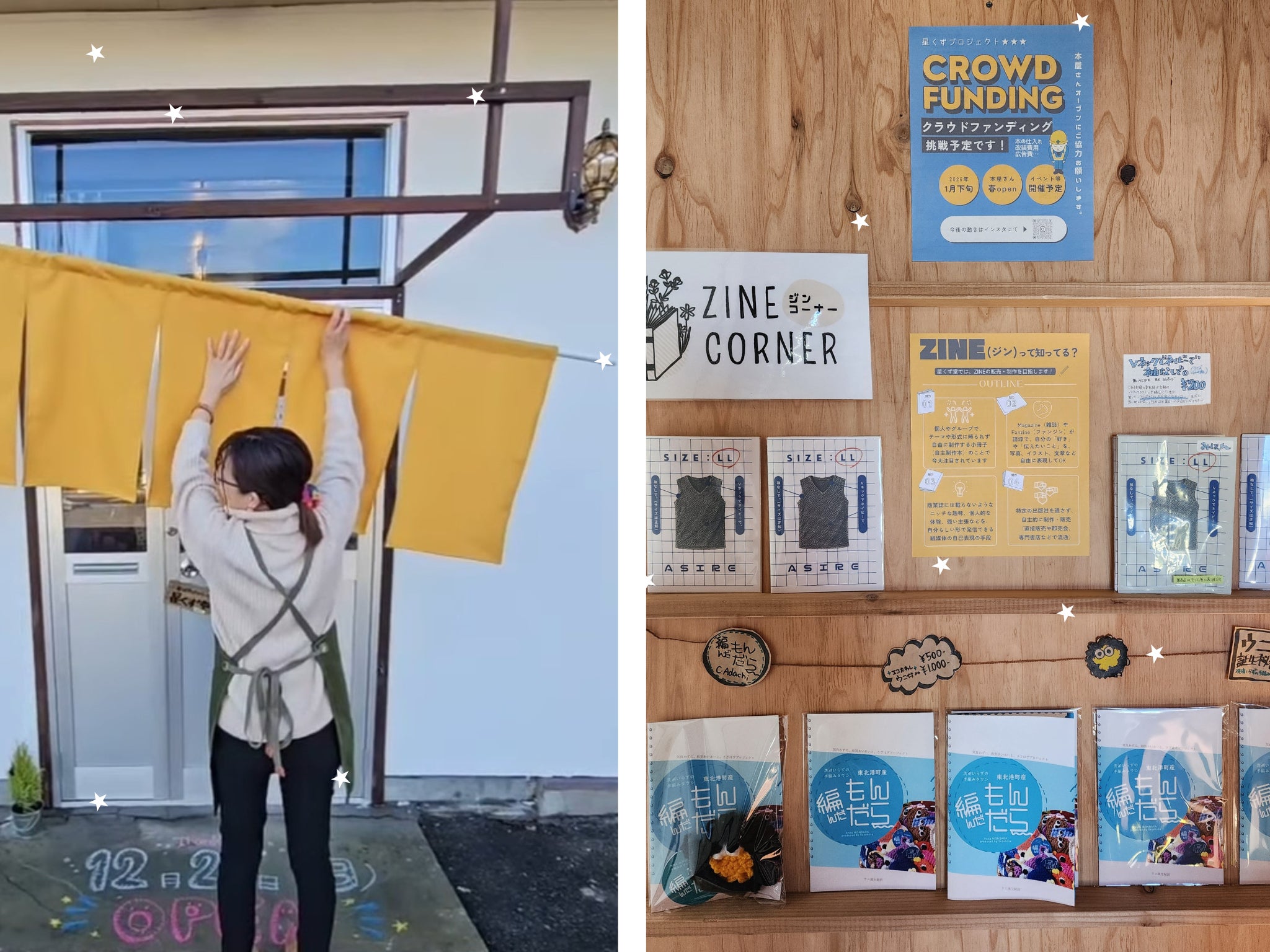 一般に流通している本だけでなく、近年若者を中心にブームになりつつある【ZINE】や地元の方の作品を扱うことも目標としています。ZINEの作成や自費出版をしてみたい方をサポートしたり、小さな書店だからできることを、みんなと一緒に考え続けます。