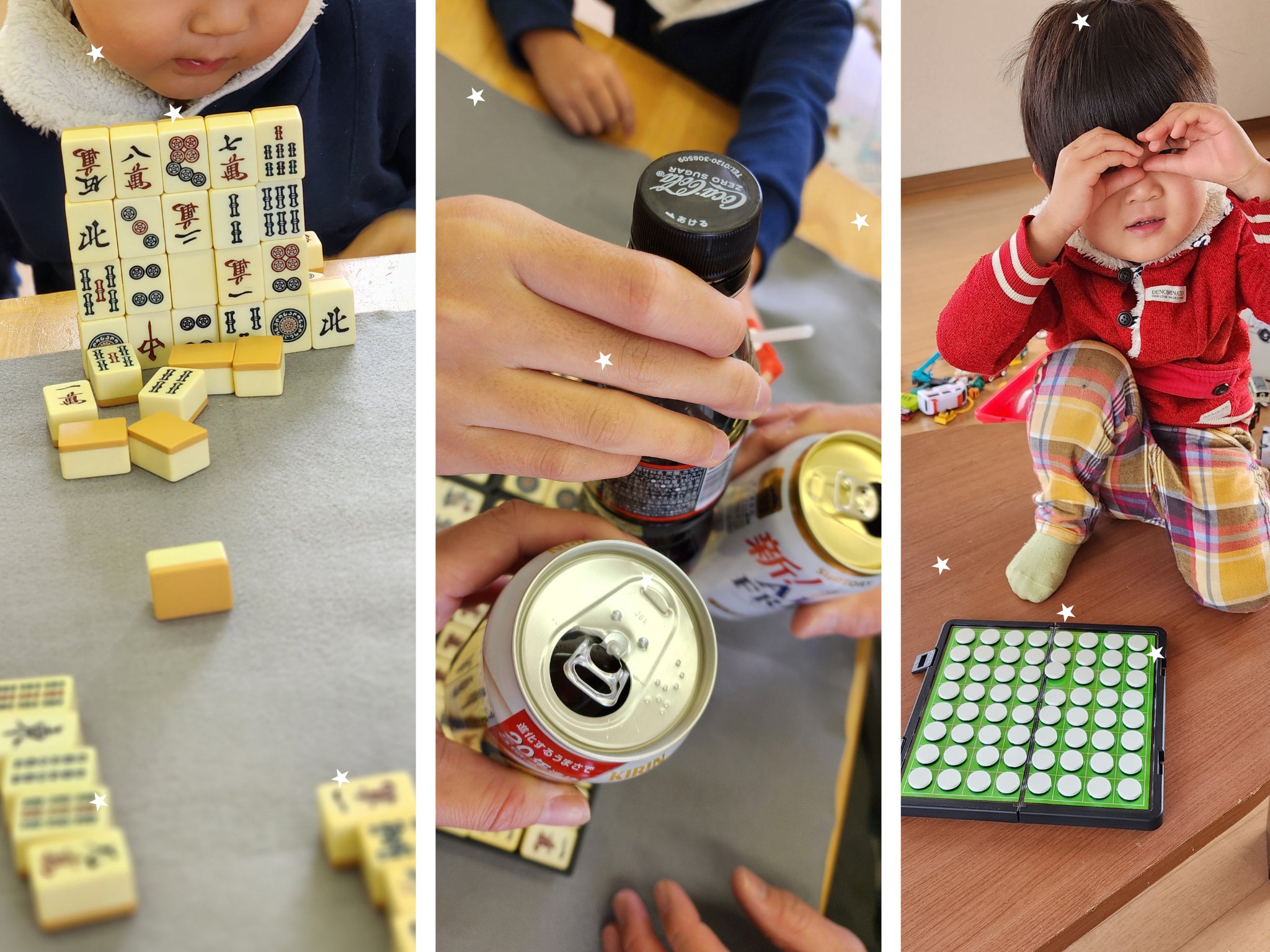 初心者麻雀大会がたまに開催されます。リバーシなどのボードゲームや折り紙、本、おもちゃ等も設置予定。