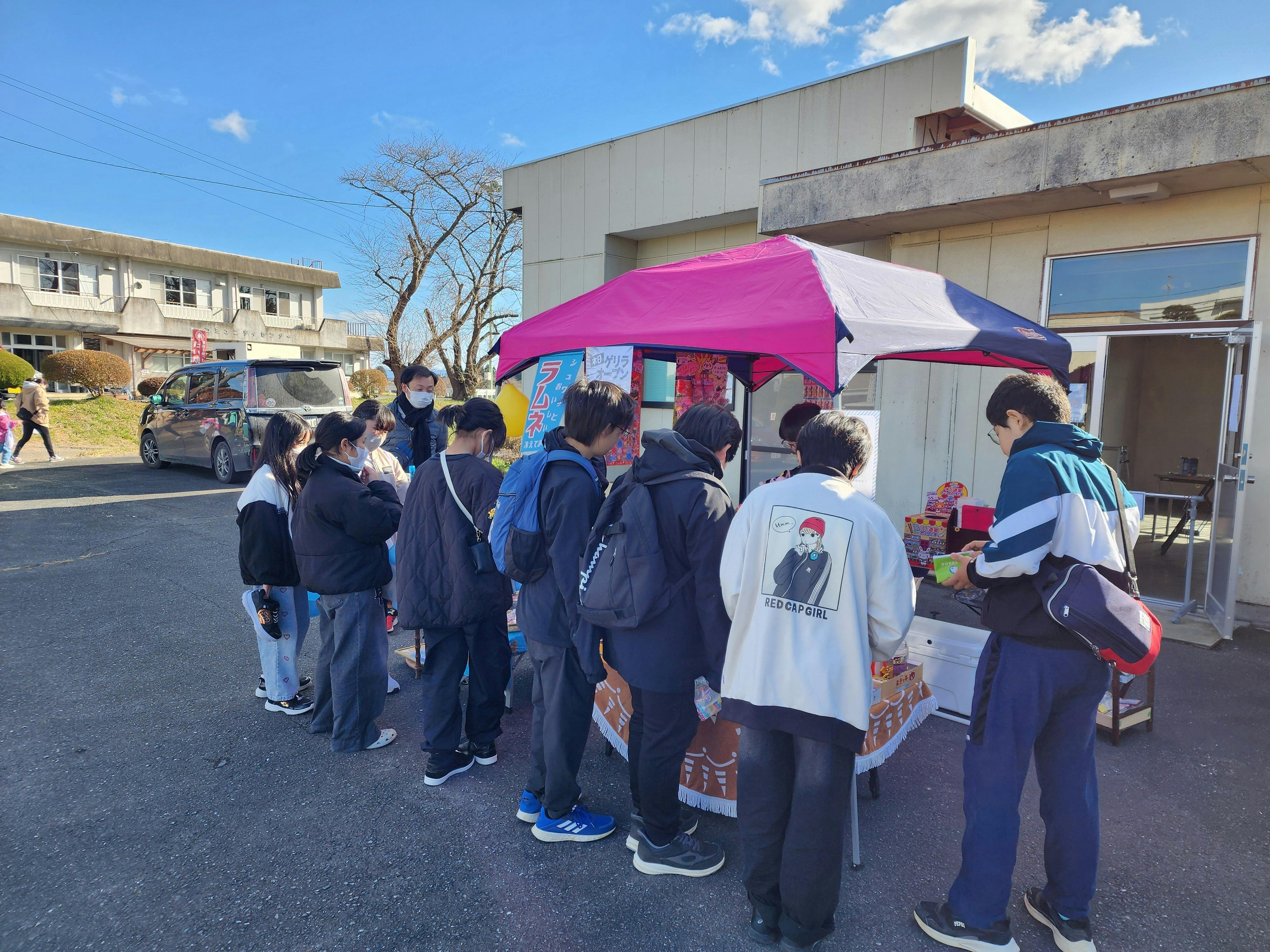 まだ、だがし屋がオープンする前。DIYの進行中に敷地内にて「ゲリラオープン」と称してゲリラ的に駄菓子の屋台販売を決行しました。直前の告知だったにもかかわらず多くのお客様に来店いただき、笑顔あふれる一日となりました。この地域での子供たちの居場所作りに確かな手ごたえを感じたイベントとなり、地域の方からも大変好意的な意見をたくさんいただきました。