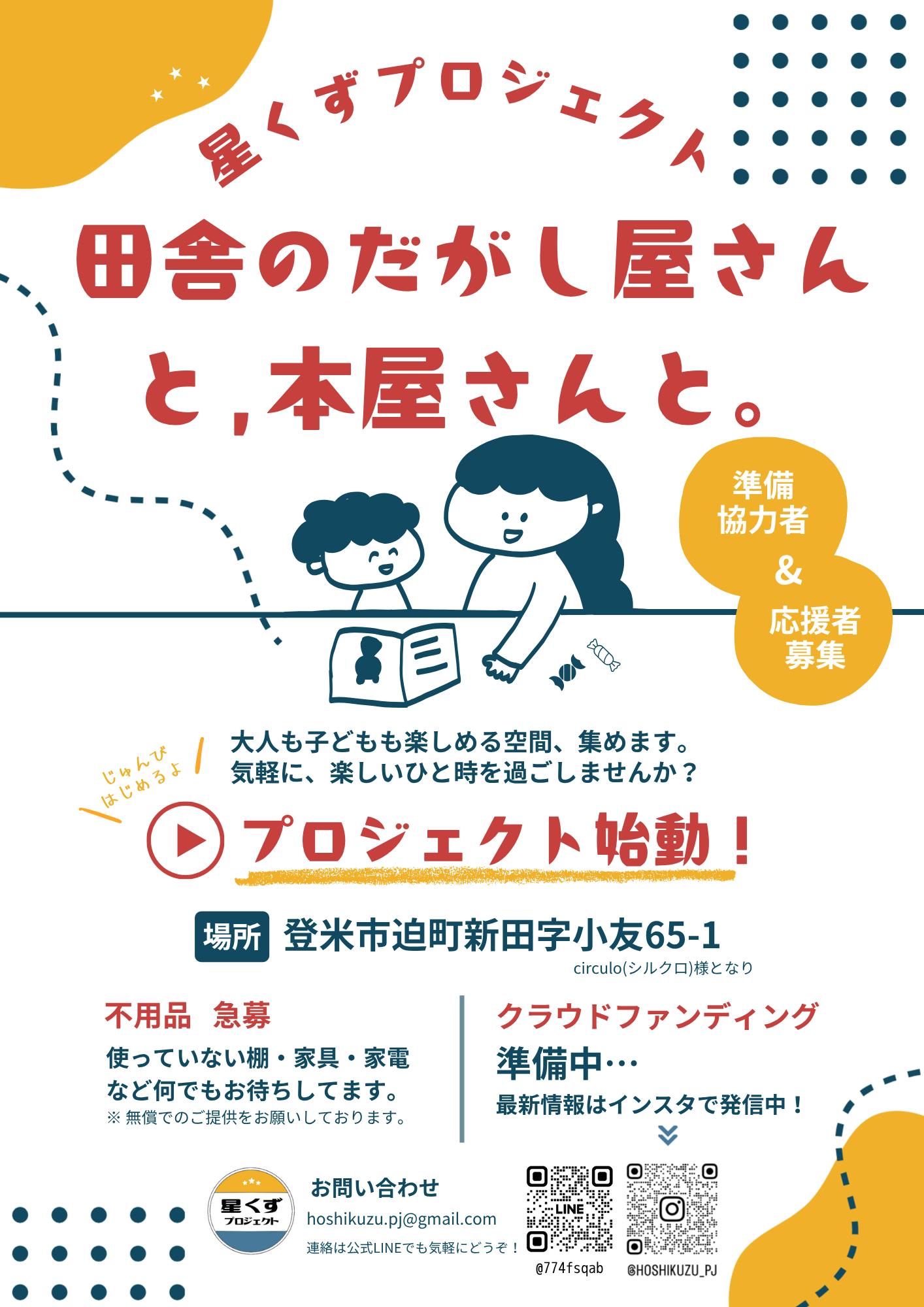 宮城県登米市迫町新田(ど田舎です!)で、だがし屋さんと本屋さんが一緒になった、子どもも大人も笑顔になれる居場所をつくりたい!という思いで立ち上がったプロジェクトです。