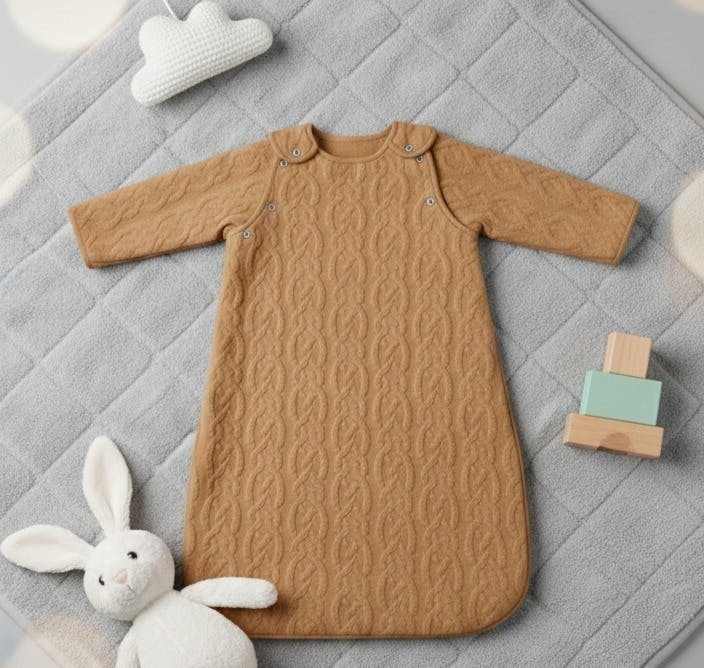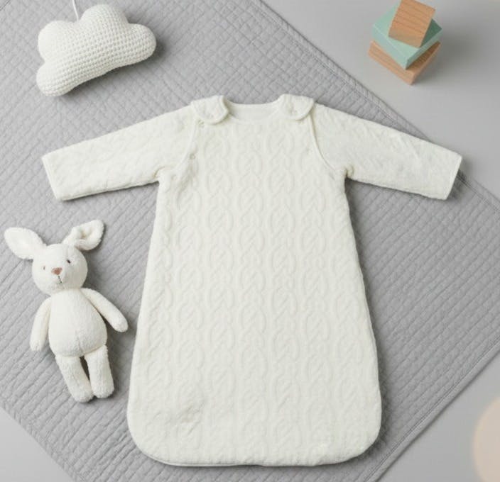このベベトンには、まるでママとパパの腕の中にいるような優しい温もりと、夜を安心して過ごすための知恵が詰まっています。朝までぐっすり、心地よく眠れる「着るお布団」として、ご家族の夜に安らぎをお届けしたい、そんな願いを込めて名付けました。