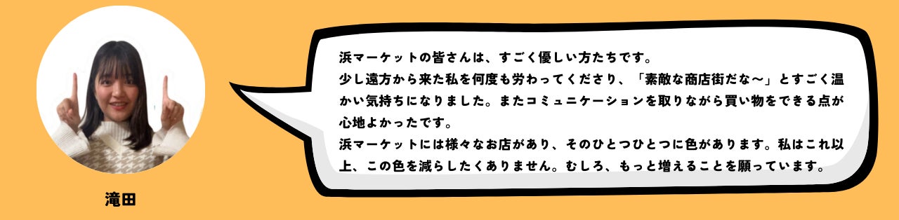 そんな勢いで動き出したら、同じ熱量の仲間が集まり、気づけばプロジェクトが立ち上がっていました。住む場所が違う私たちだからこそ、よそ者ならではの視点で浜マーケットの良さを拾い上げ、次の世代につなげられると信じています。
