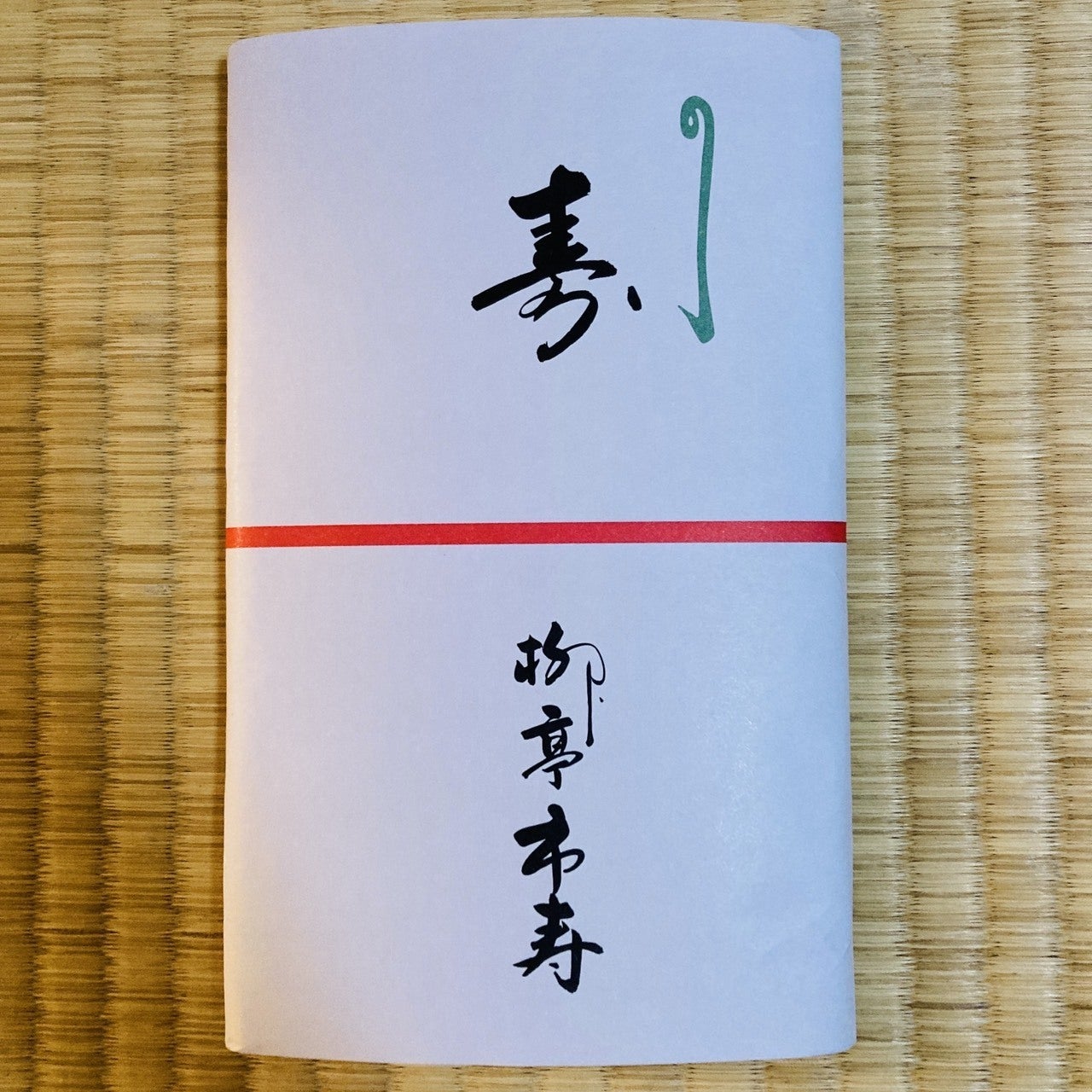 柳亭市寿さんによる限定デザインの手ぬぐいです。お渡しする手ぬぐいはピンク色で、熨斗を付けてお渡しします。