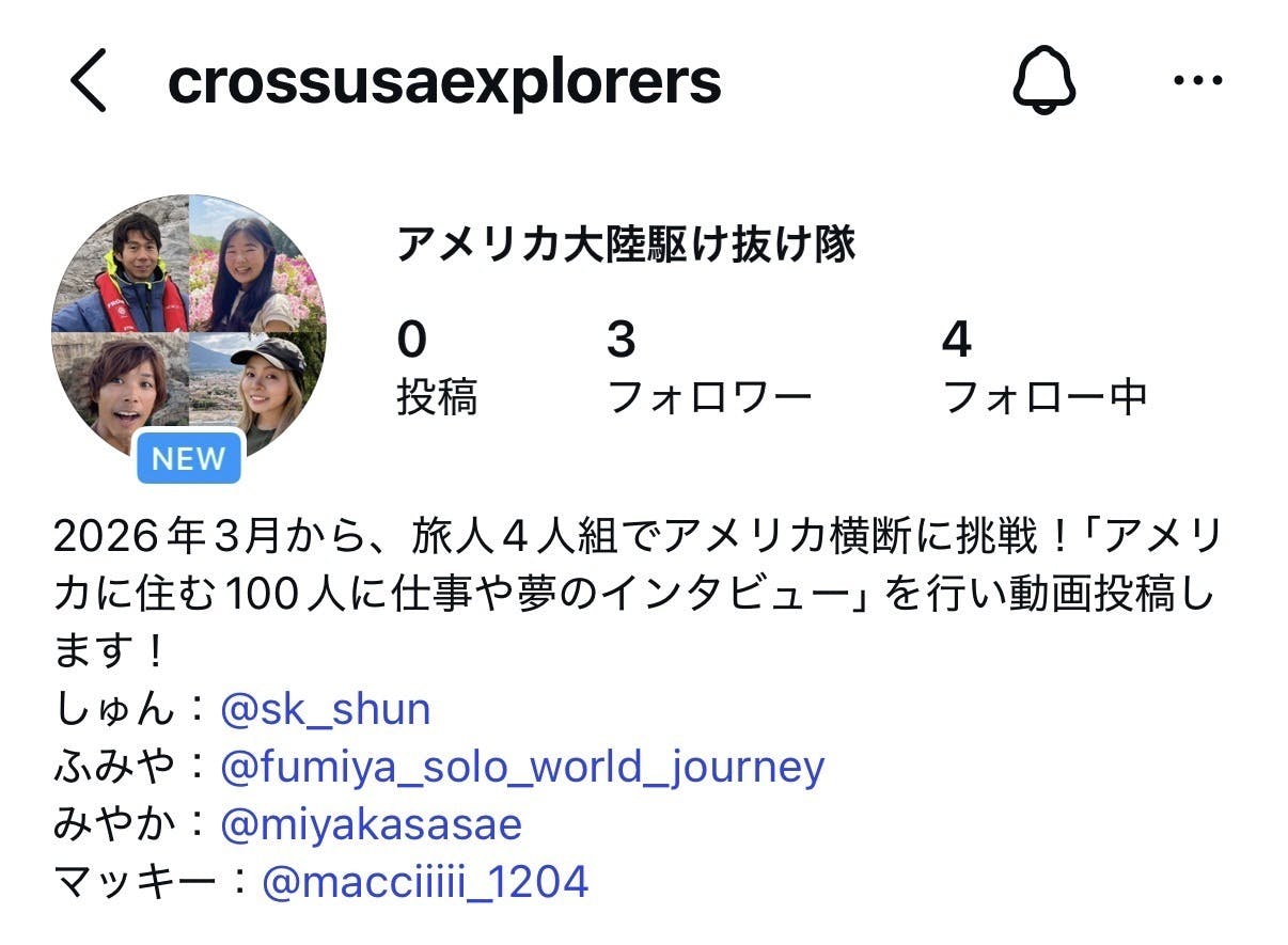 この仲間で「2026年3月からアメリカ横断」に挑戦します!