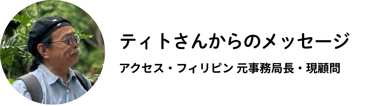私が初めてフィリピンを訪れたのは今から23年前。厳しい貧困の現実を突きつけられたと同時に、人々のあたたかさに魅了され、以来ずっと、フィリピンの人々とともに、貧困や人権侵害の痛みを軽減する活動を続けています。