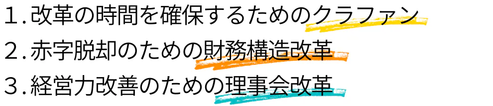 並行して、赤字を生み出してきた【財務構造】を抜本的に変える必要があります。