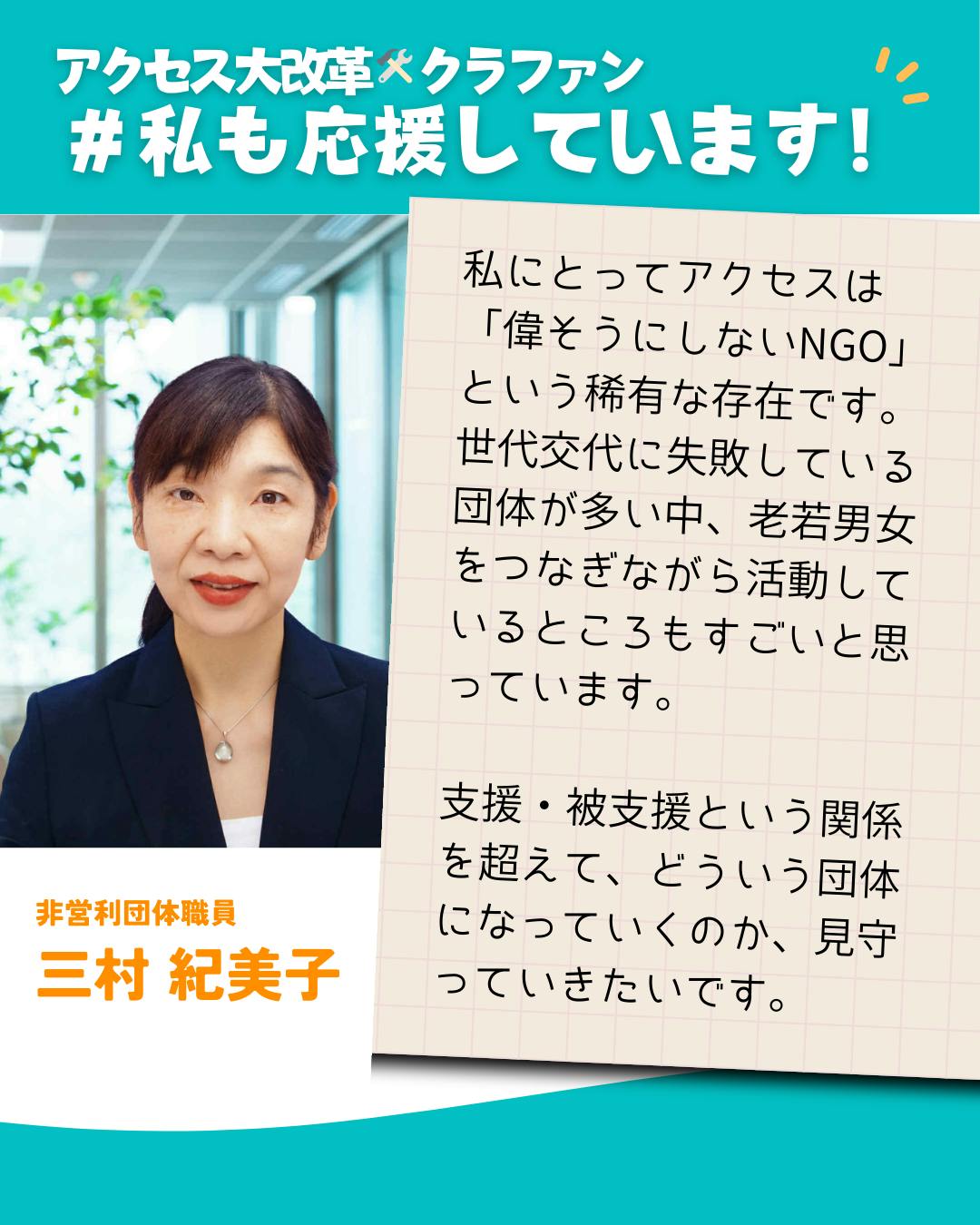 「アクセスは偉そうにしないNGO」by 非営利団体スタッフ 三村紀美子さん