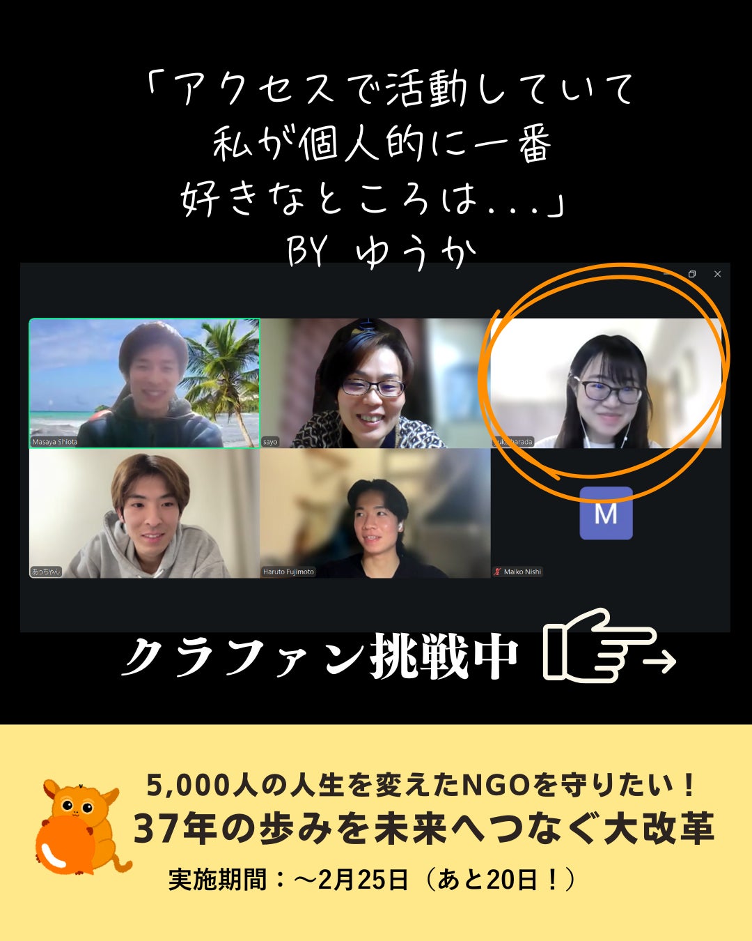 こうした経験が、次の世代へも受け継がれていくことには、大きな意味があると信じています。その意味でも、アクセスの活動を続けていくために、このクラファンを絶対に成功させたい!私たちの挑戦を、最後まで見守っていただけたら幸いです。