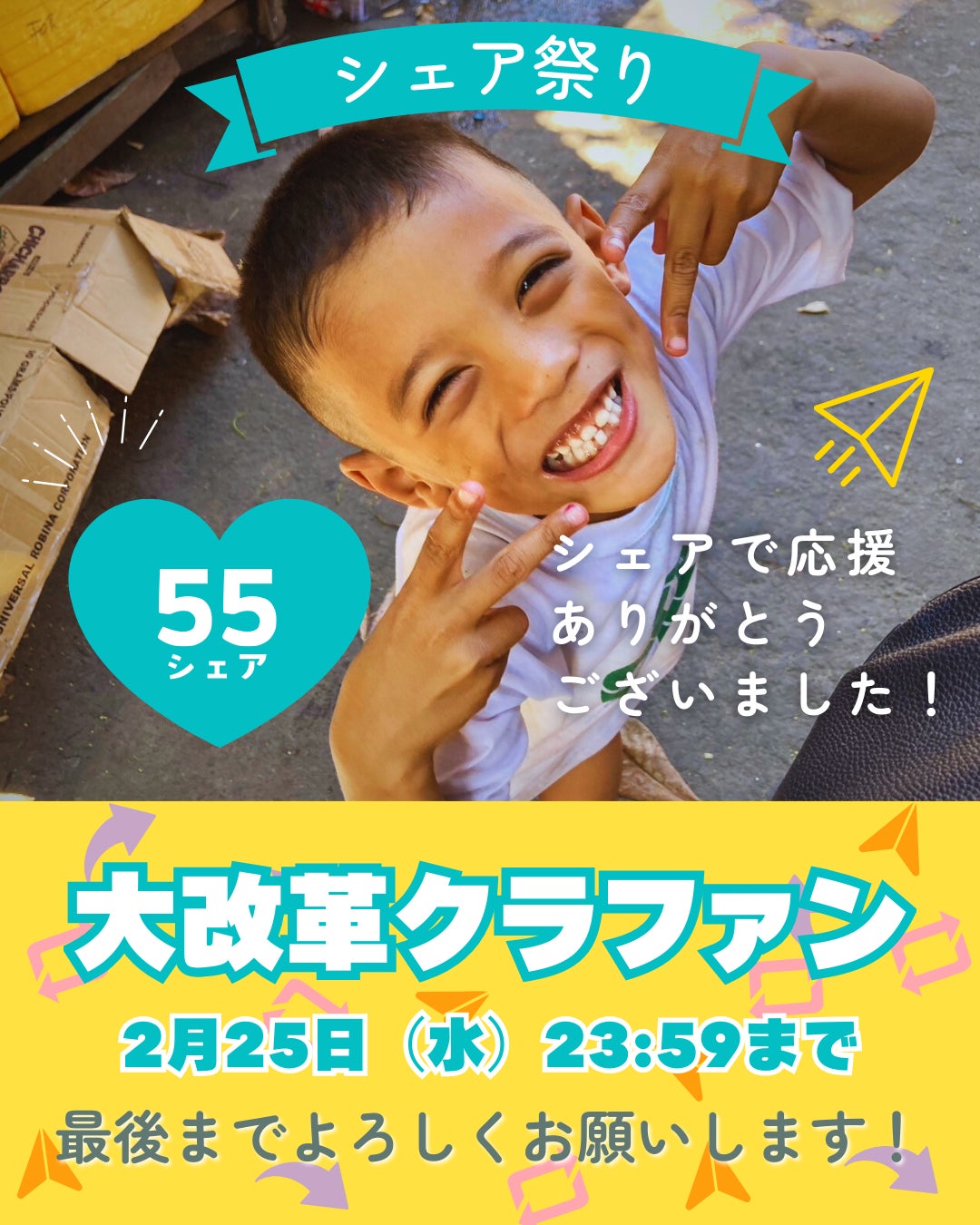 皆さんのシェアによって、アクセスという団体、現在行っているクラウドファンディングについて多くの方に情報を届けることができたと思います☺