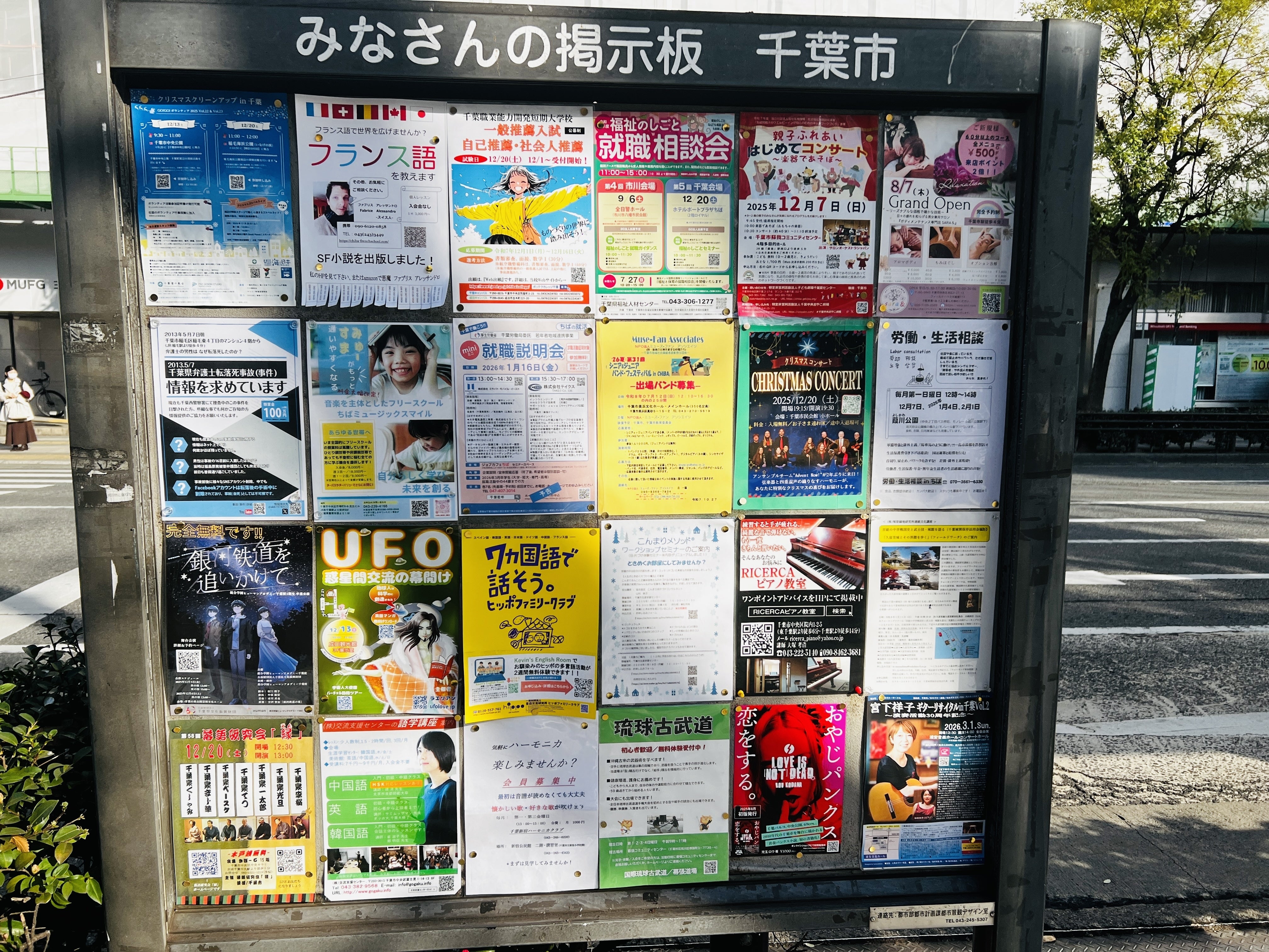 千葉市の掲示板にも貼らせていただきました(右下あたり)