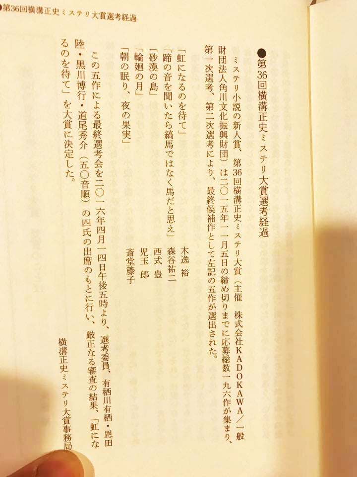 ついに僕の携帯に出版社から電話がかかってきました。聞けばなんと、応募していた「横溝正史ミステリ大賞」の最終審査に、僕の作品が残ったというではありませんか。