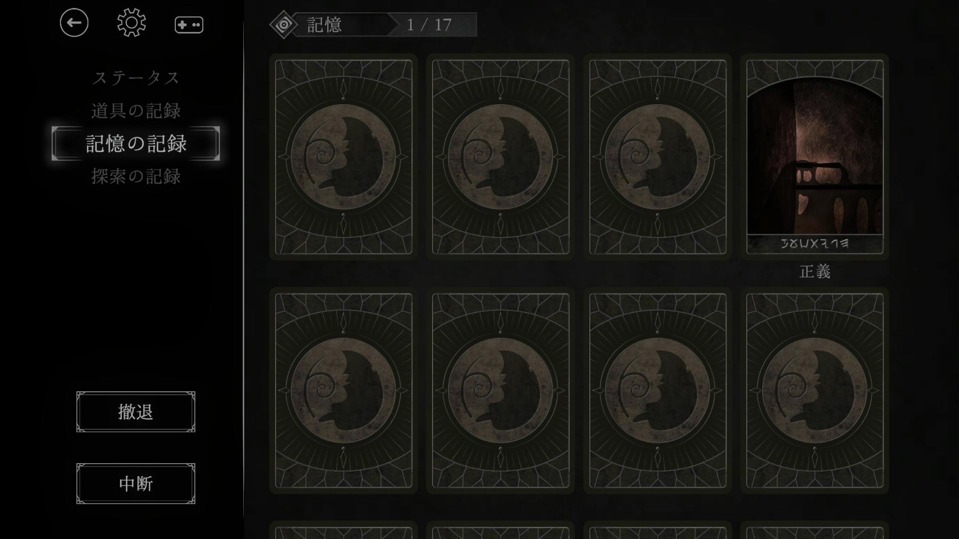 道具の記録、記憶の記録は図鑑機能となります。入手した道具や記憶が確認でき、