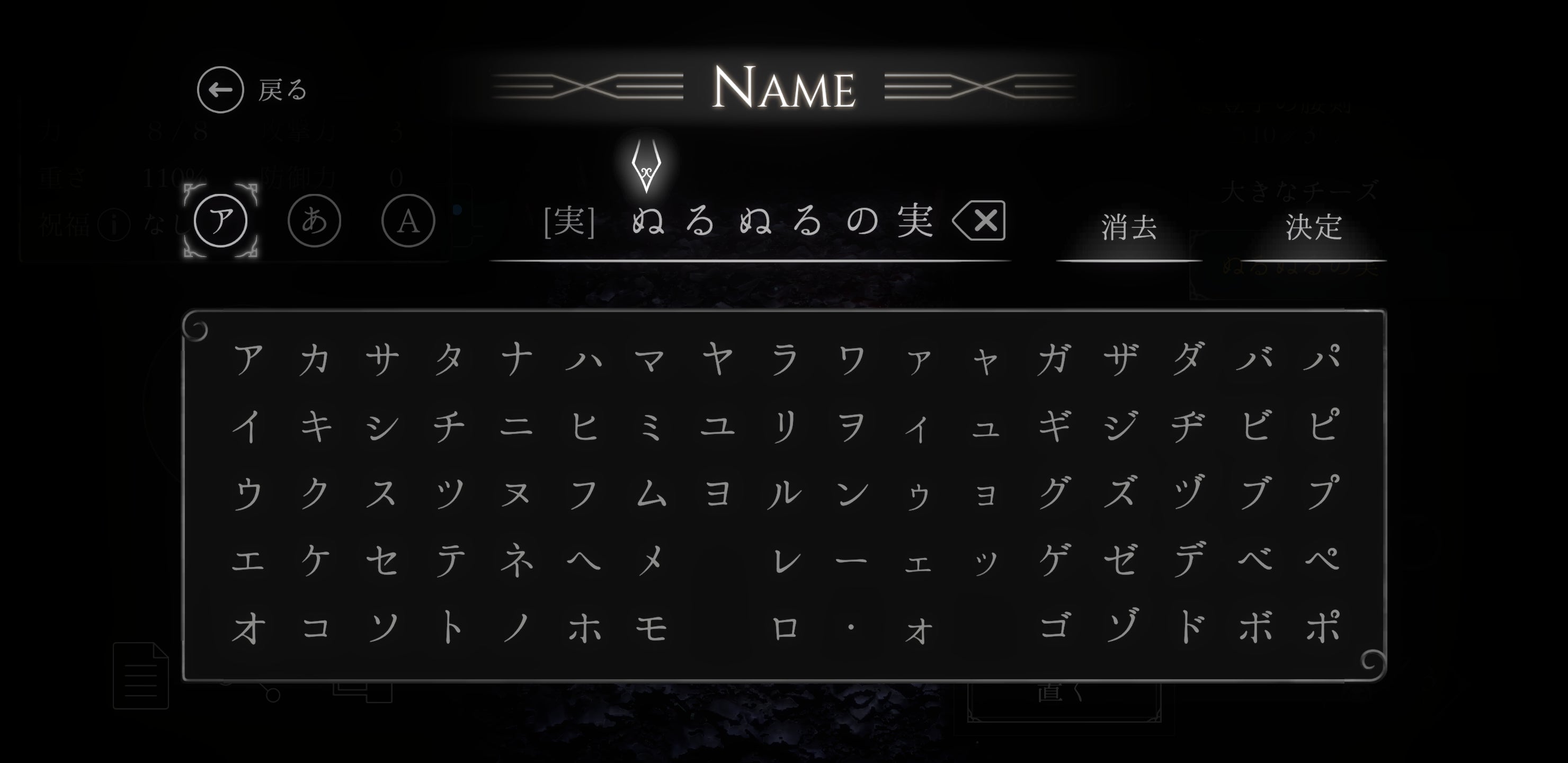 この道具選択画面でも簡易説明ウインドウから詳細確認、名前変更が行えます。
