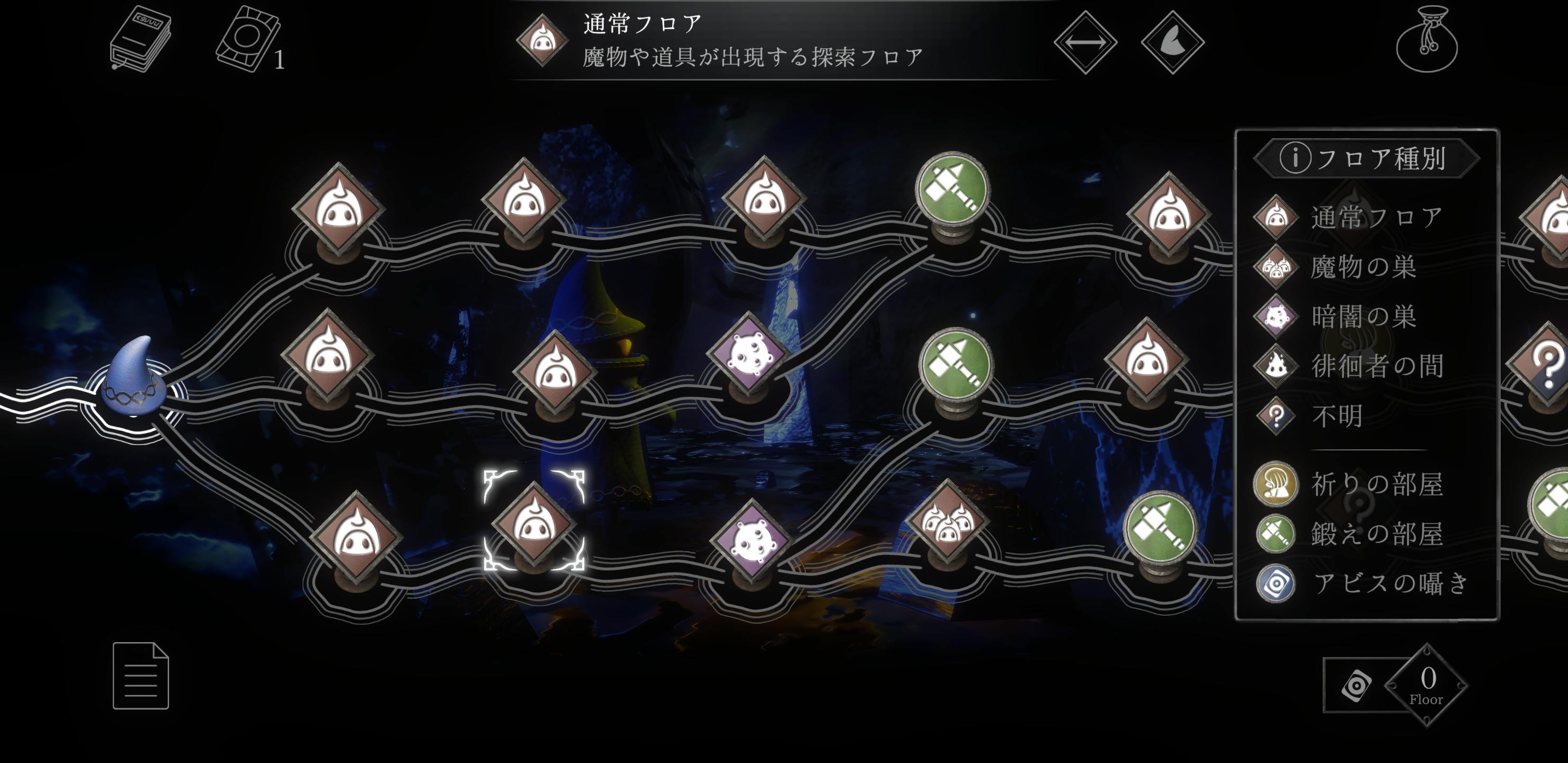 ここでは、次に進むフロアを選ぶ・エリア全体の確認を行います。