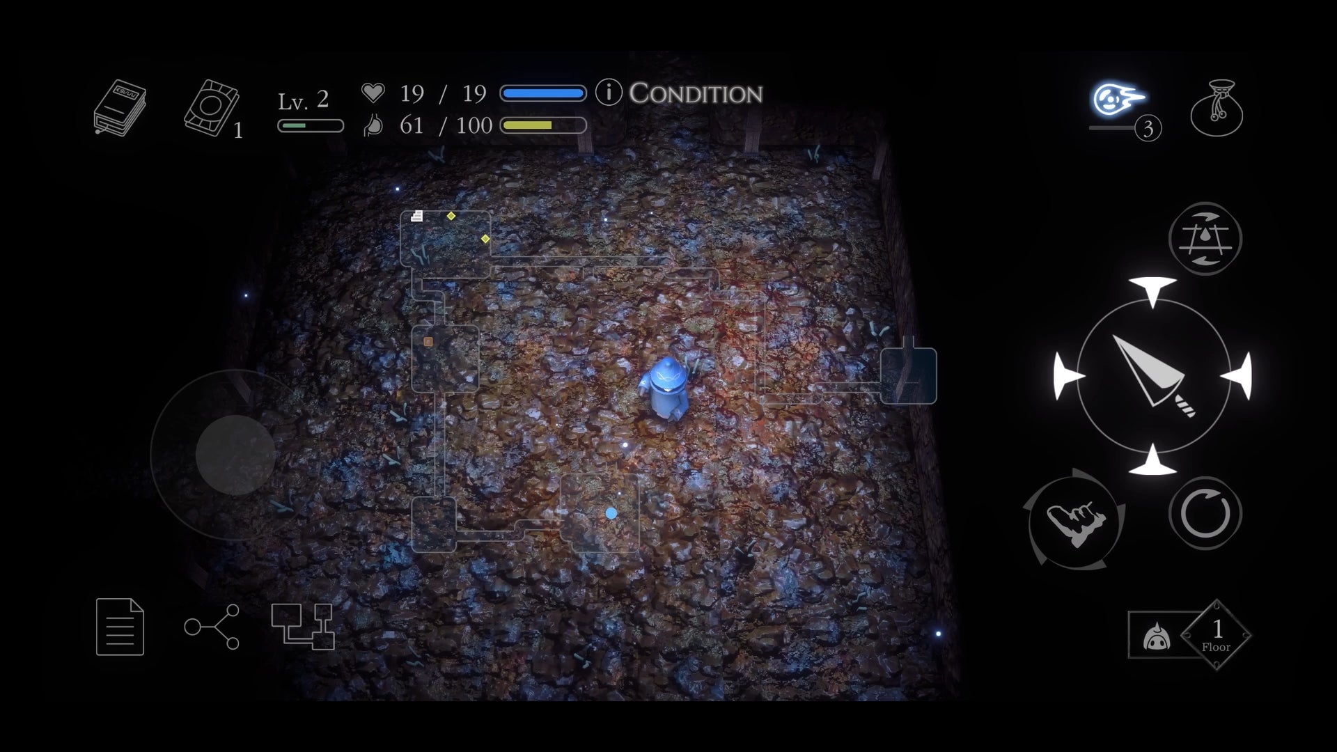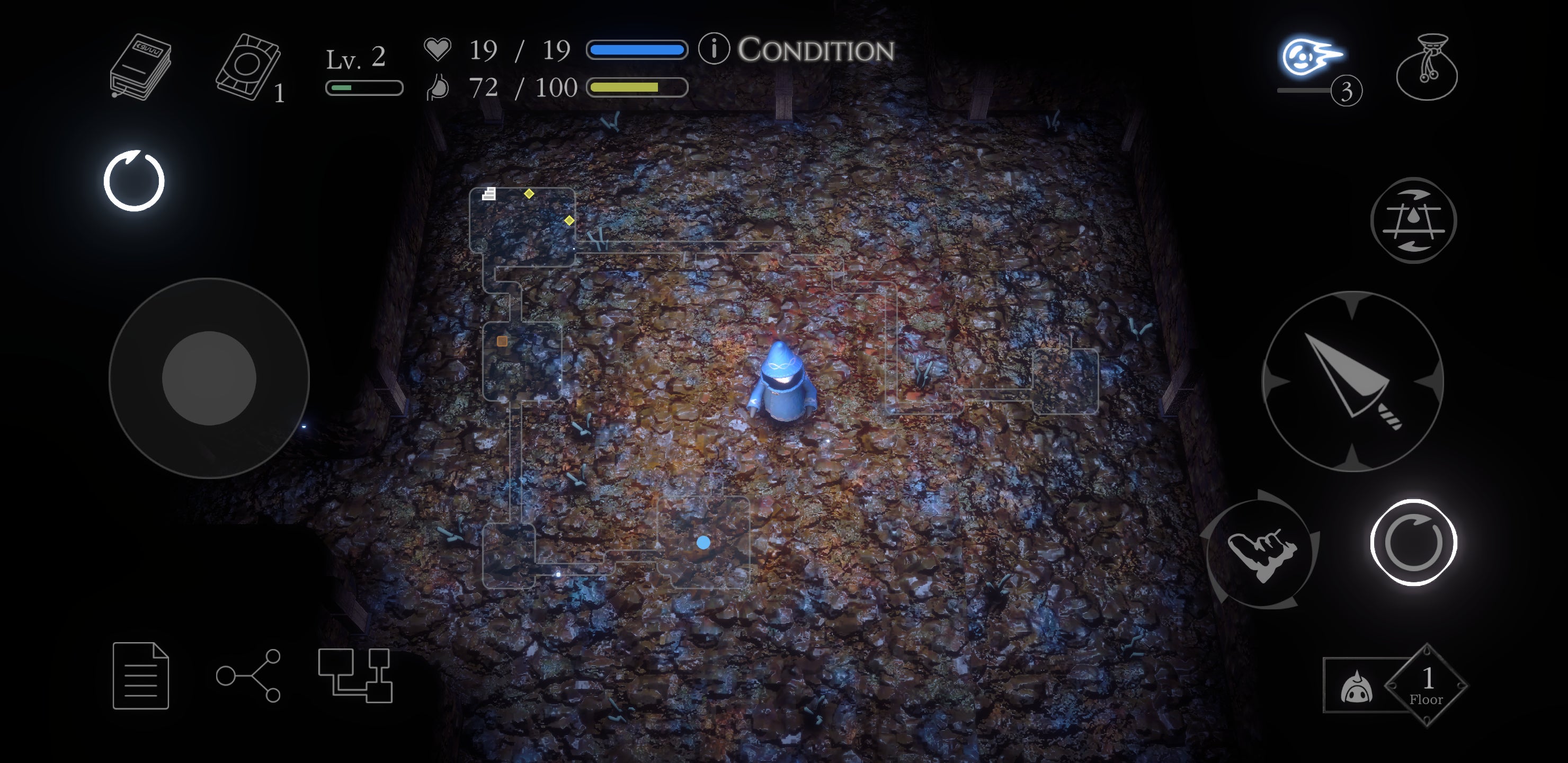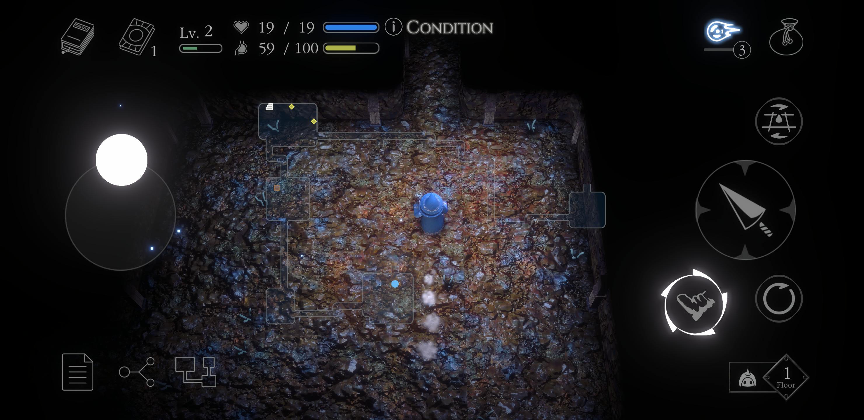 押下しながらバーチャルパッド操作でダッシュ移動します。