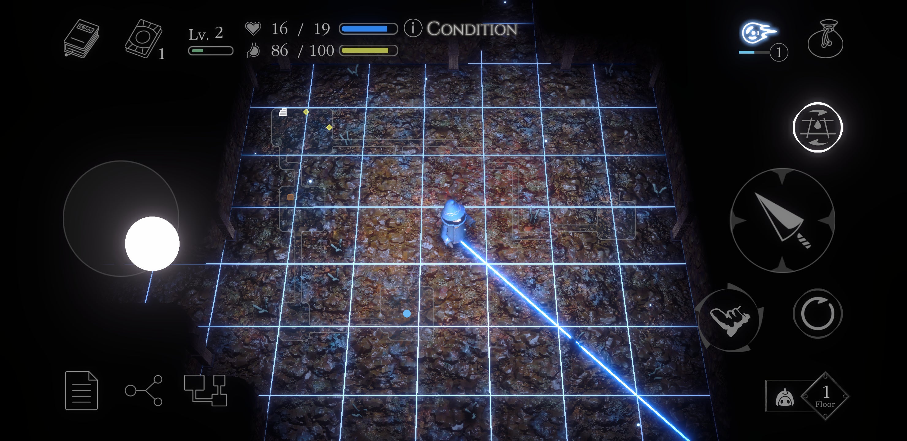押下中はグリッドが表示され、画面左のバーチャルパッド操作で向きを変えます。
