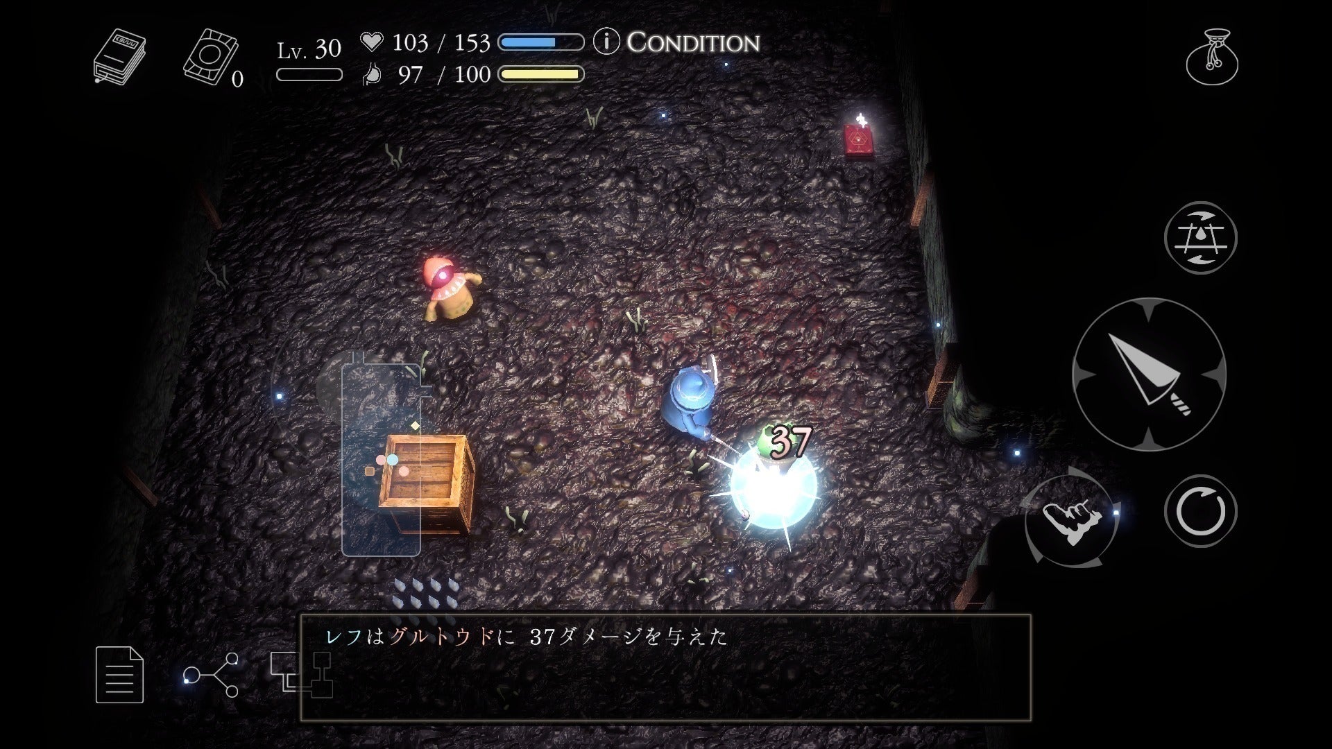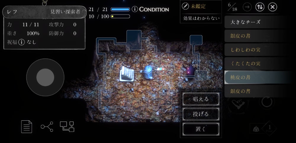 暗いダンジョンの中で飢えに気をつけながら魔物を倒し、階段を目指します。