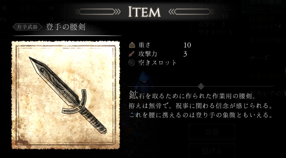 武器は両手持ちタイプもある、装備には重さがあってお腹の減り具合が変わるといった、