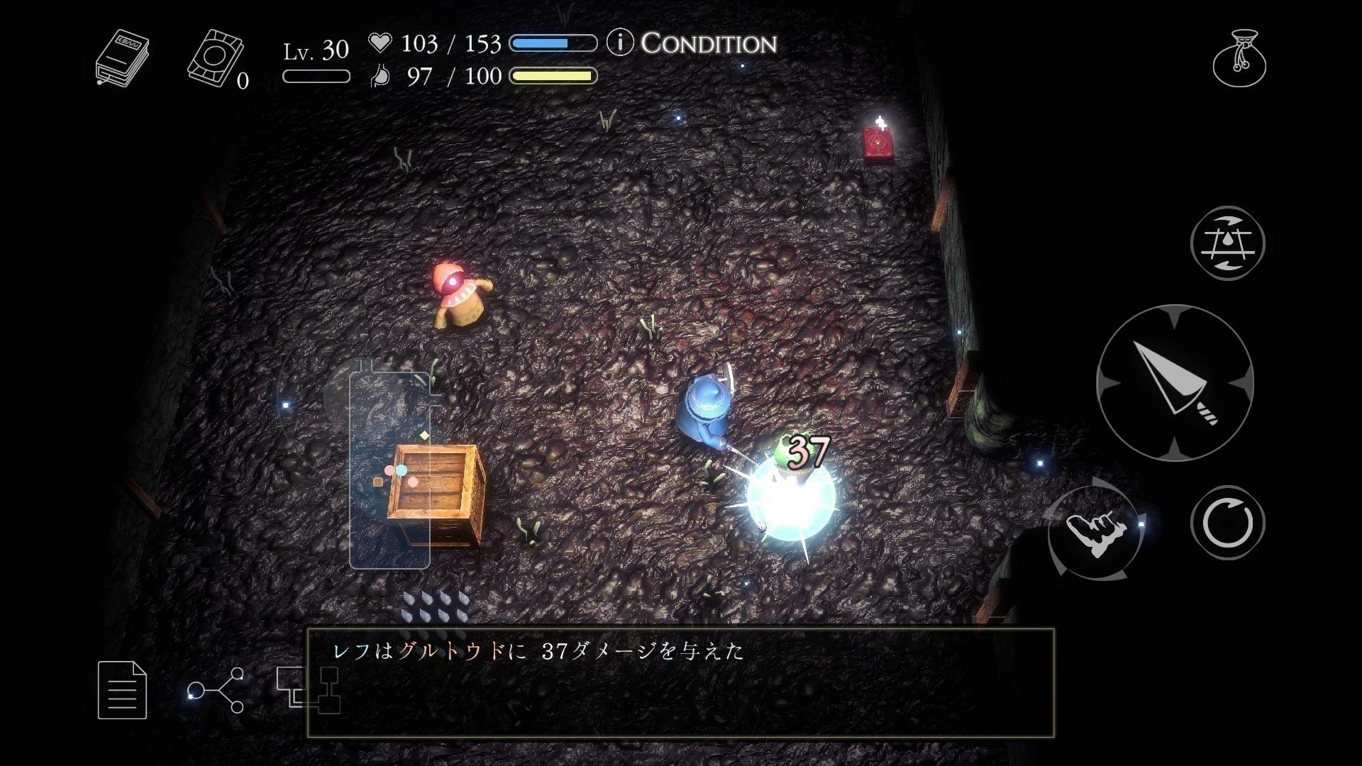 暗いダンジョンの中で飢えに気をつけながら魔物を倒し、階段を目指します。