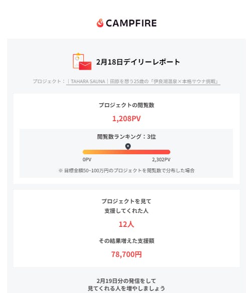2/12時点でご支援いただいた皆様には、一斉メール機能を通じて、ご登録のメールアドレス宛にYouTube限定公開のお礼動画をお送りさせていただきました。