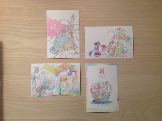 吉原と「吉原芸術大サービス」の絵の原画とそれをポストカードにしたものをプレゼントします。