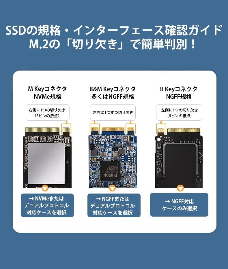 デュアルプロトコル(NVMe/SATA)に対応しているため、手持ちのM.2 2230 SSDがどちらの規格でもそのまま使える上、互換性を気にせず安心して組み込みや交換が行えます。