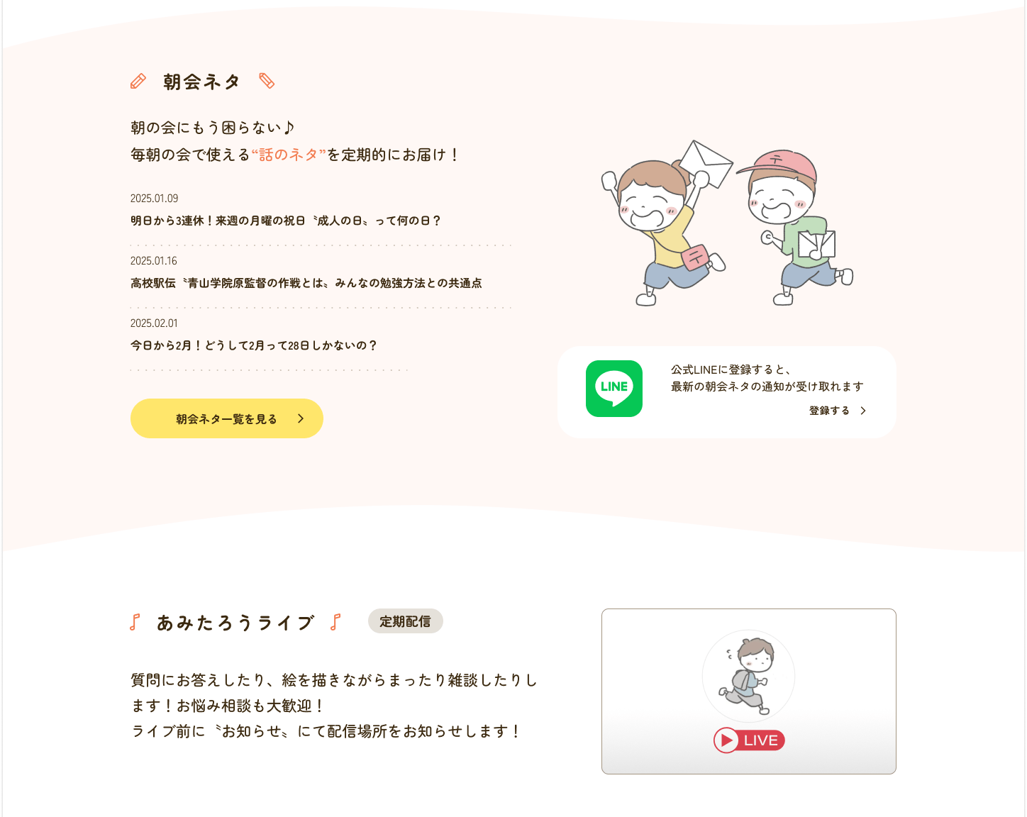 毎月、その時期に必要となる教材を継続的に提供しながら、サイトの基盤を整えていきます。