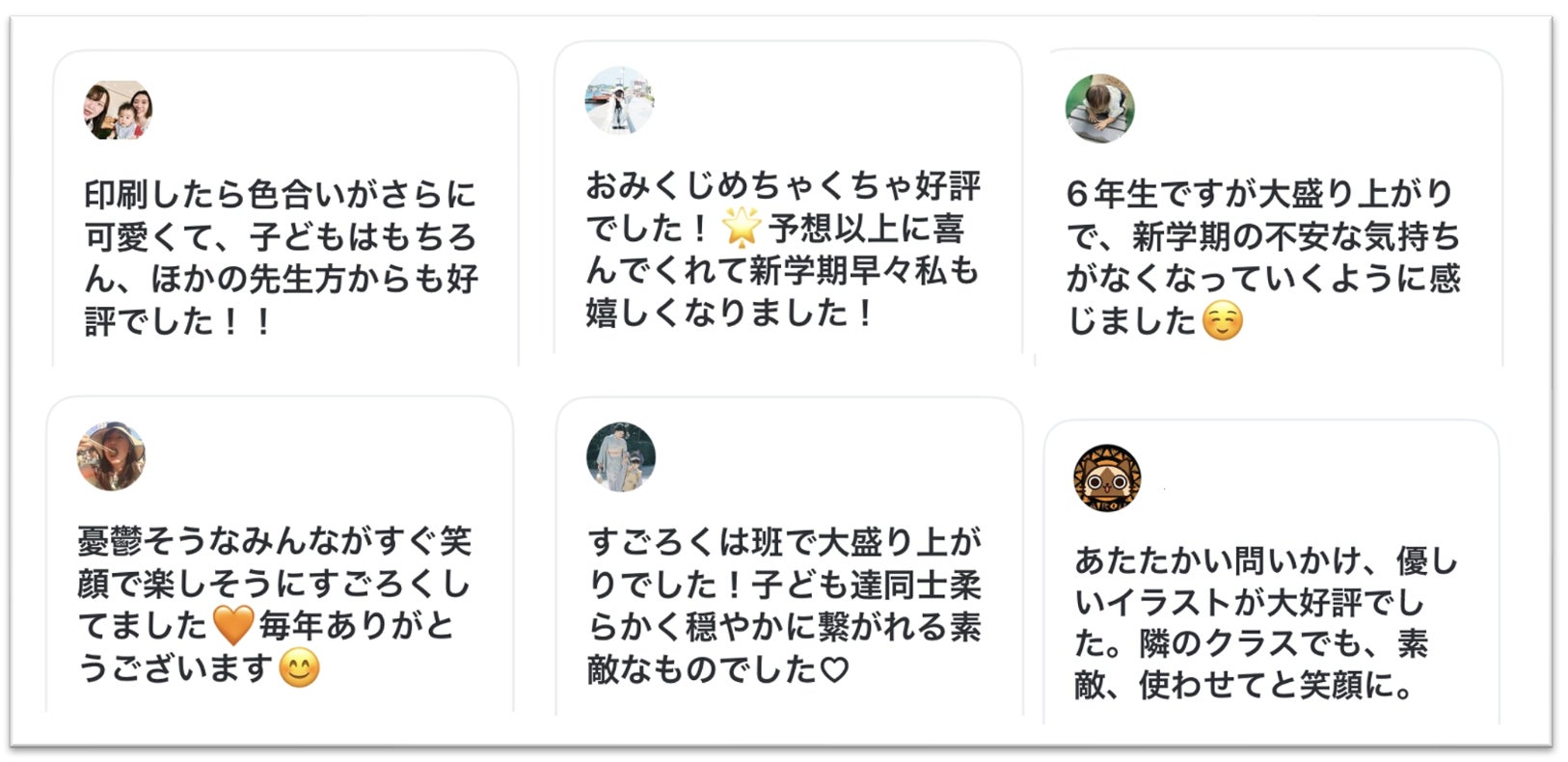 いつも助かってます!冬休み明けのすごろくも大盛り上がりでした!応援しています✨