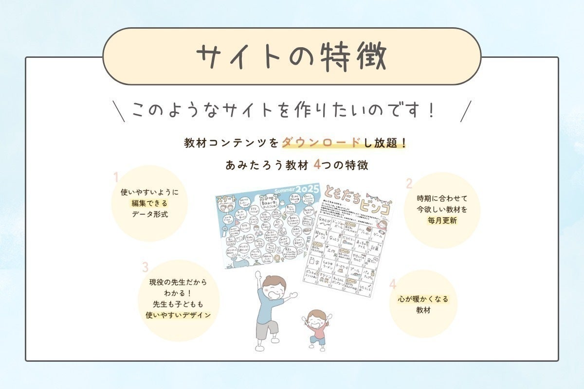 毎月、その時期に必要となる教材を継続的に提供しながら、サイトの基盤を整えていきます。
