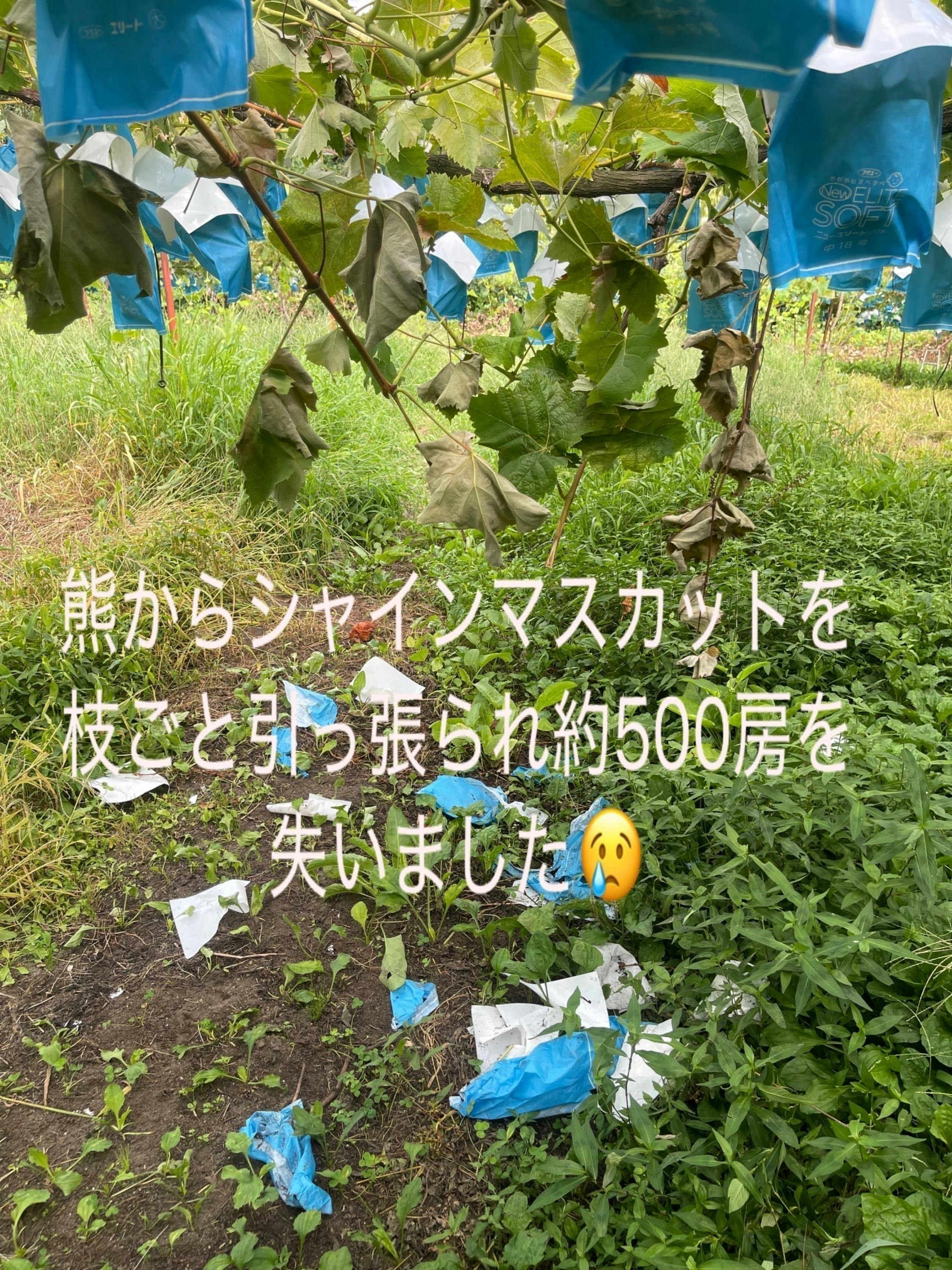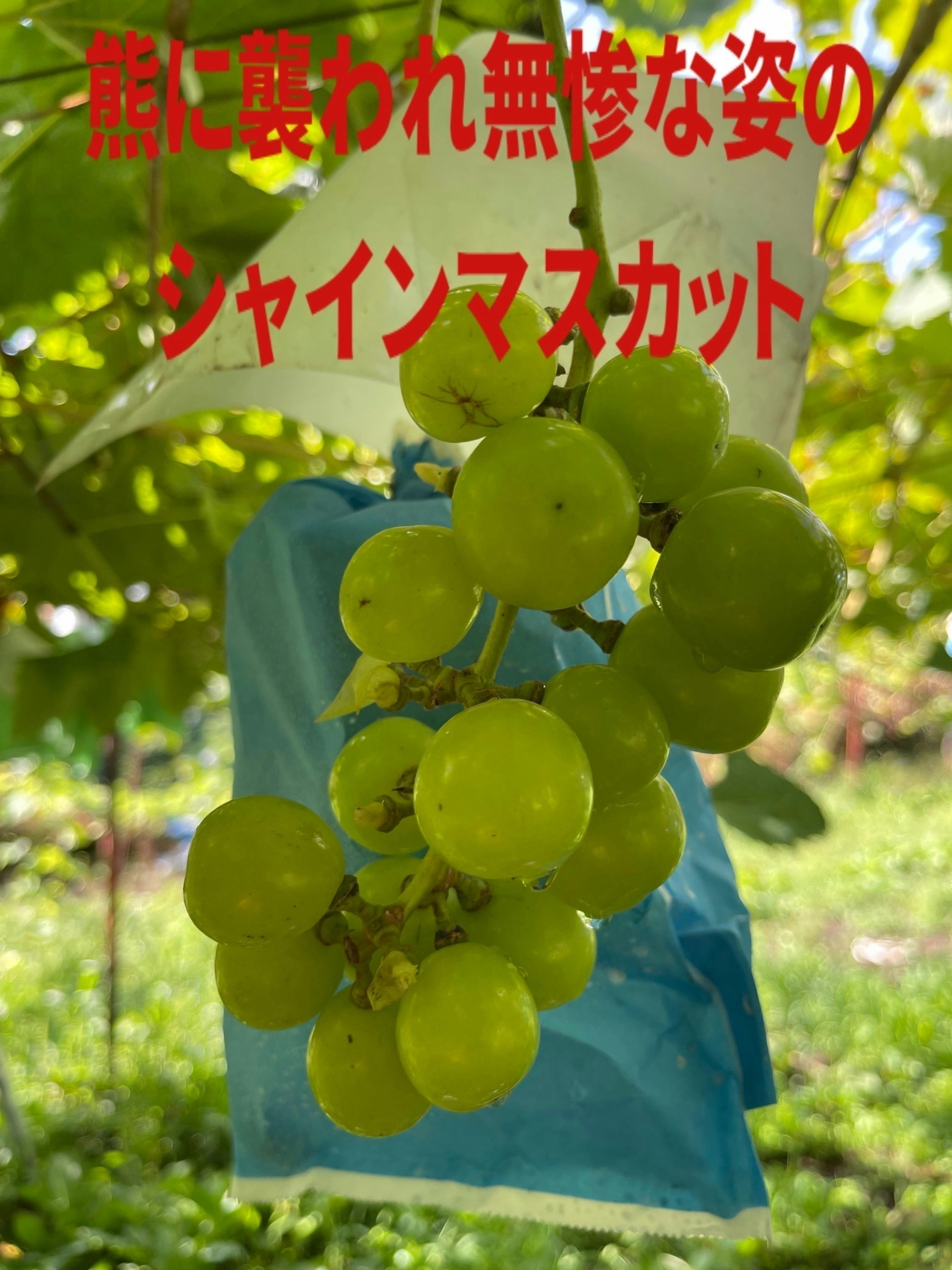 私たちの農園は、今年分の収穫を終えたばかりですが、売上が思うように伸びず、経費ばかりがかかってしまい、経営が大赤字となってしまいました。年々厳しくなる自然環境で今年は雨不足によりブドウ全般に粒が大きくならない現象により収量の目減りがあり、更には主力のシャインマスカットを500房ほどとワイン用ブドウを約4.5トン熊に食べられてしまいました。生きるか死ぬかの瀬戸際で昨年に引き続きプロジェクトを立ち上げました。
