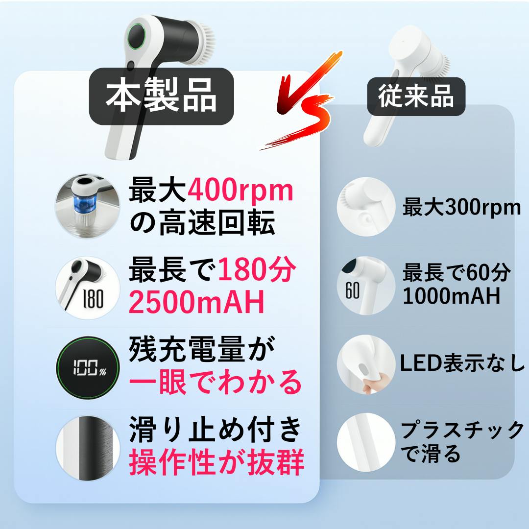 令和の掃除はもっとスマートであるべきです。『電動スピンスクラバー』は、単なる電動ブラシではありません。プロ仕様のトルク性能と、スマホ並みの軽さを両立させた、家庭用クリーニングツールの決定版です。