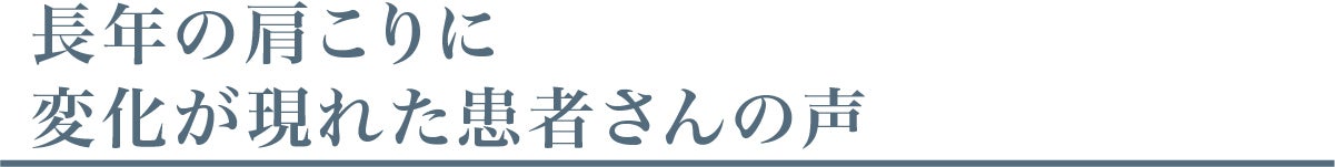 「肩こりが楽になりました。何年も悩んでいたので、本当に嬉しいです」