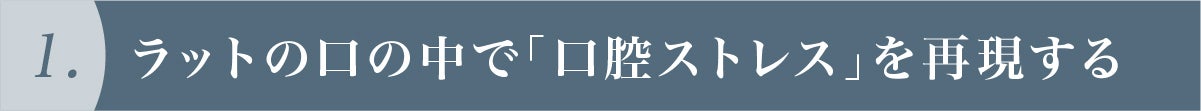 ラットの口腔内に、人間の舌や頬が歯に当たる歯科用プラスチックを取り付け現代人の口腔内を再現します。その結果「舌」に炎症ができるかどうかを検証します。