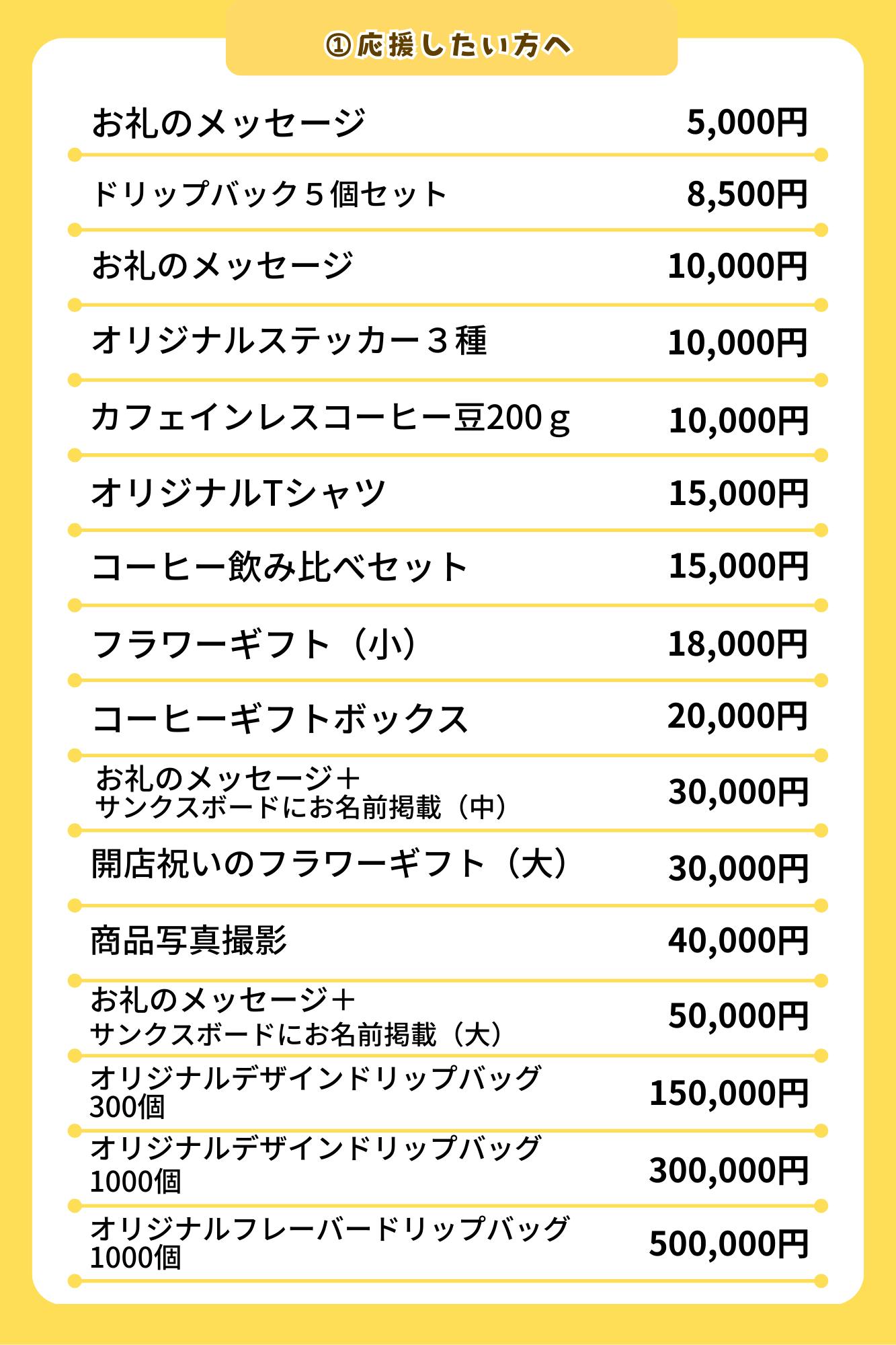 このプロジェクトのリターンは、「どんな関わり方をしたいか」で3つのタイプに分かれています。