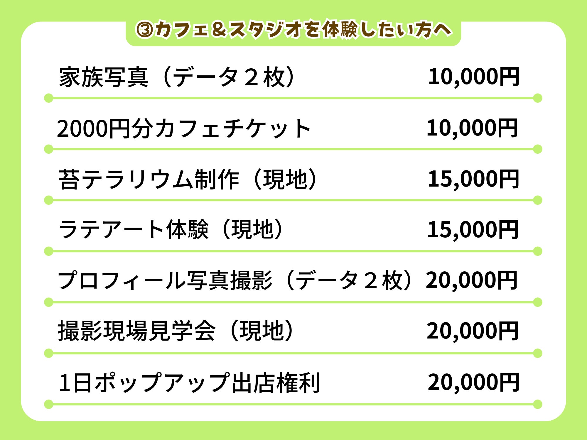 このプロジェクトのリターンは、「どんな関わり方をしたいか」で3つのタイプに分かれています。