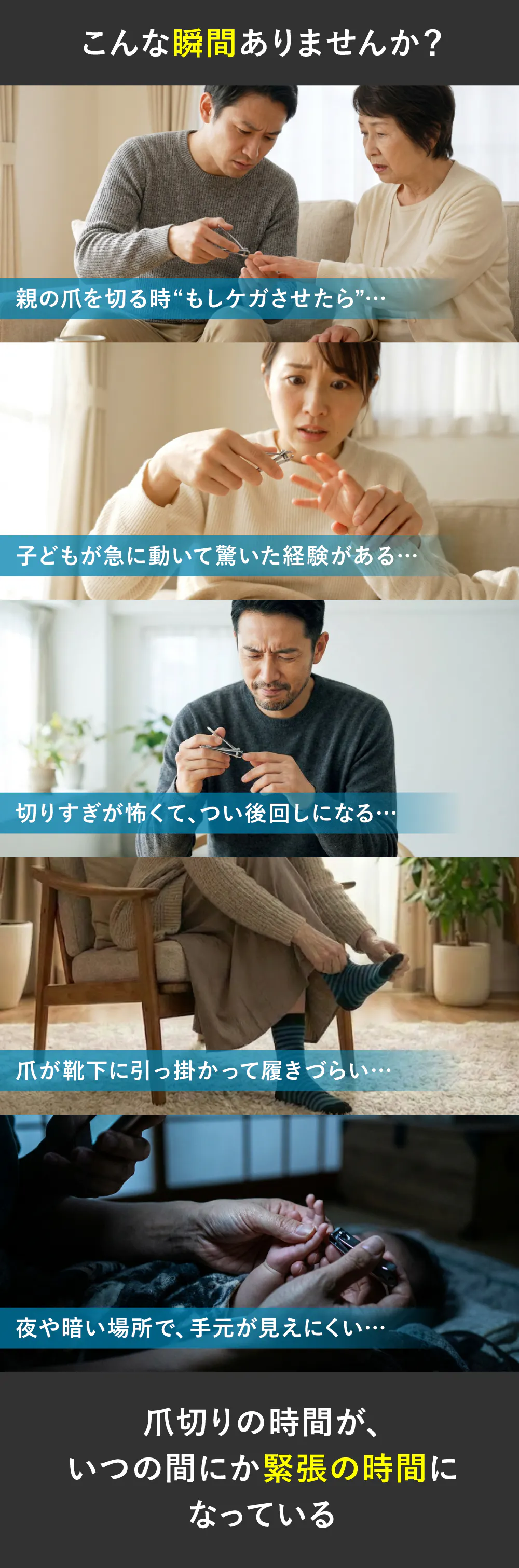 それでも、親の爪をケアするときや、子どもの爪のお手入れをするとき、「もし失敗したら・・・」と不安を感じる瞬間があります。その不安が、爪ケアの時間を落ち着かない時間にしてしまうことも少なくありません。