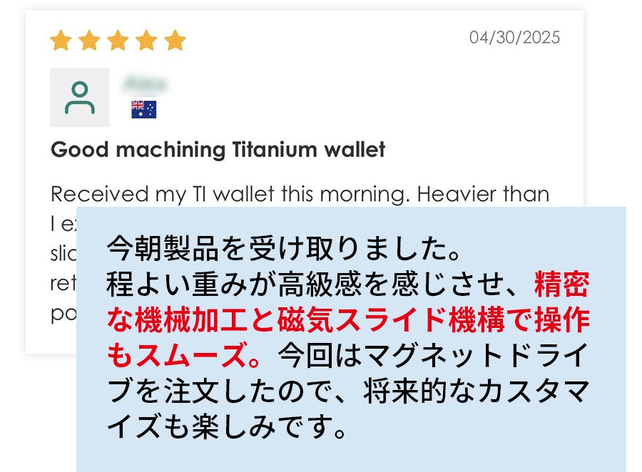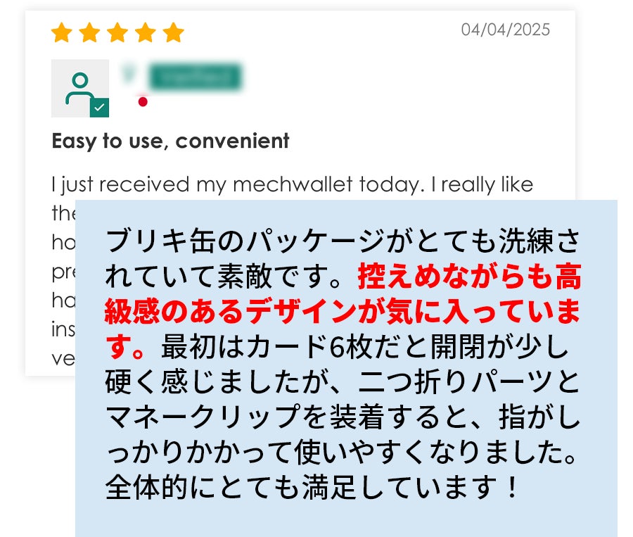 Mech Walletのデザイナーであるマークとレオンの想いが、日本でも深く共感されたことを実感しています。また、サポーターの皆様から寄せられた「使うのが楽しみになった」というお声を拝し、大変うれしく思っております。