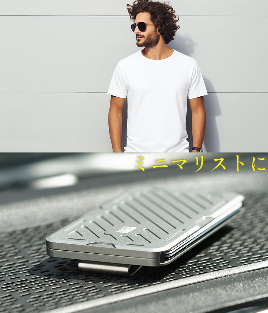ビジネスでもカジュアルでも映えるメカニカルな存在感は、 “使い捨てない”エコな選択をしたい人にもぴったり。ミニマルで、美しく、ずっと使える。 そんなメタルウォレットです。