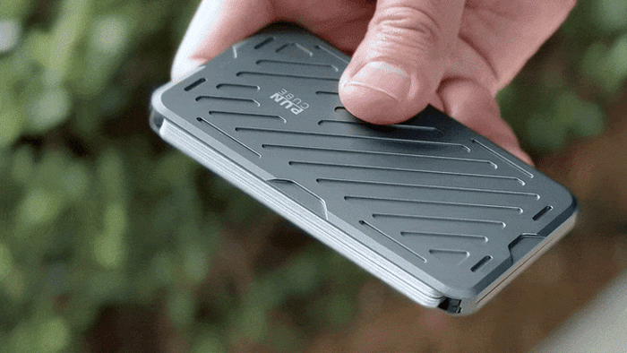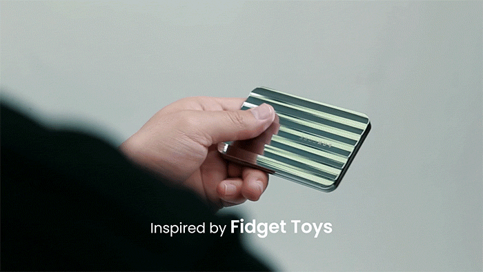 Mech Walletは、カードを収納するだけでなく、スライドやクリックの動作自体が気持ちいい、“フィジェットトイ的”な機能を備えています。